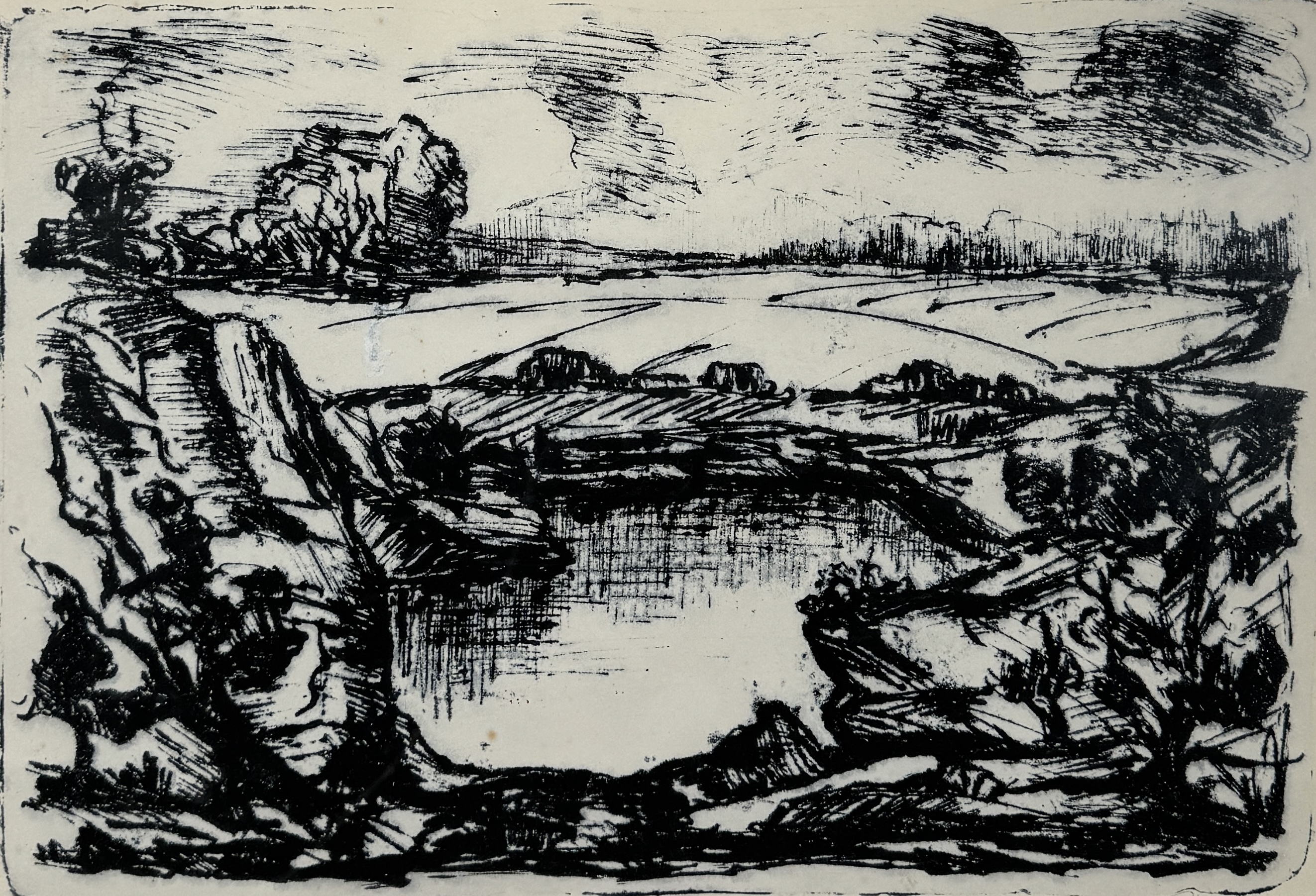 Litho, Egbert de Gries – “Landschap met bron”, 1970, Nederland