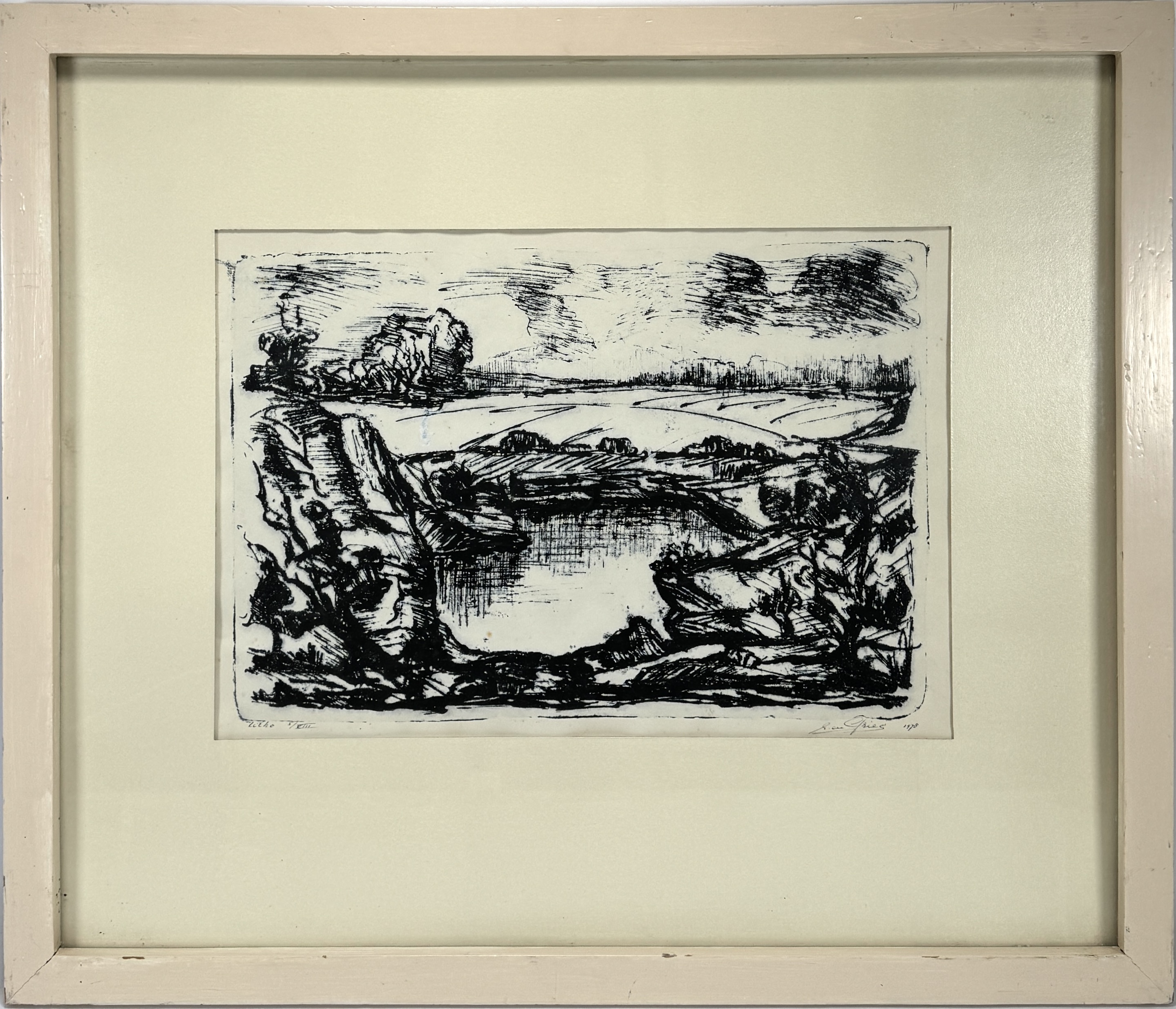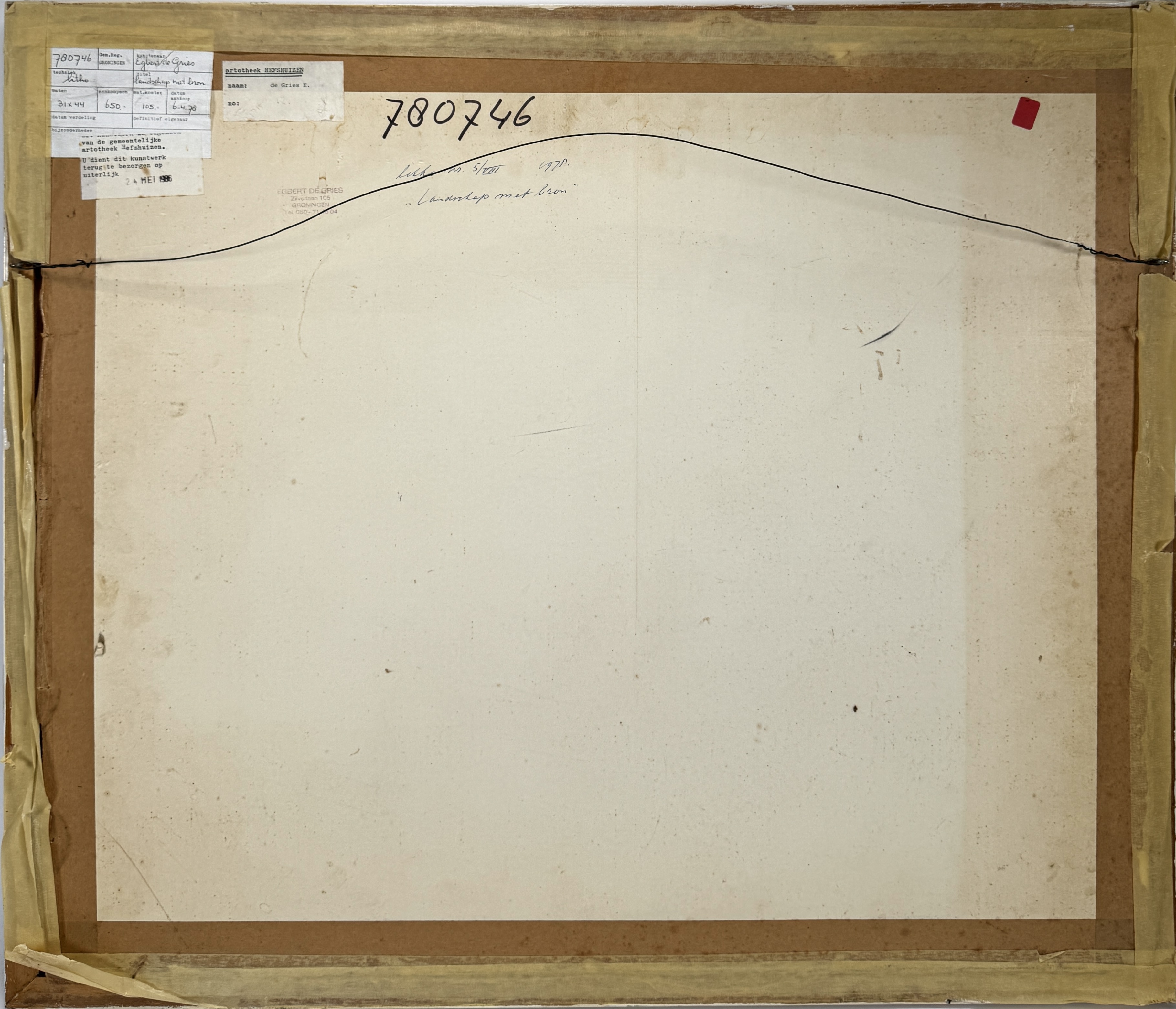 | Kavelnummer en naam | 1111. Litho, Egbert de Gries – “Landschap met bron”, 1970, Nederland | |