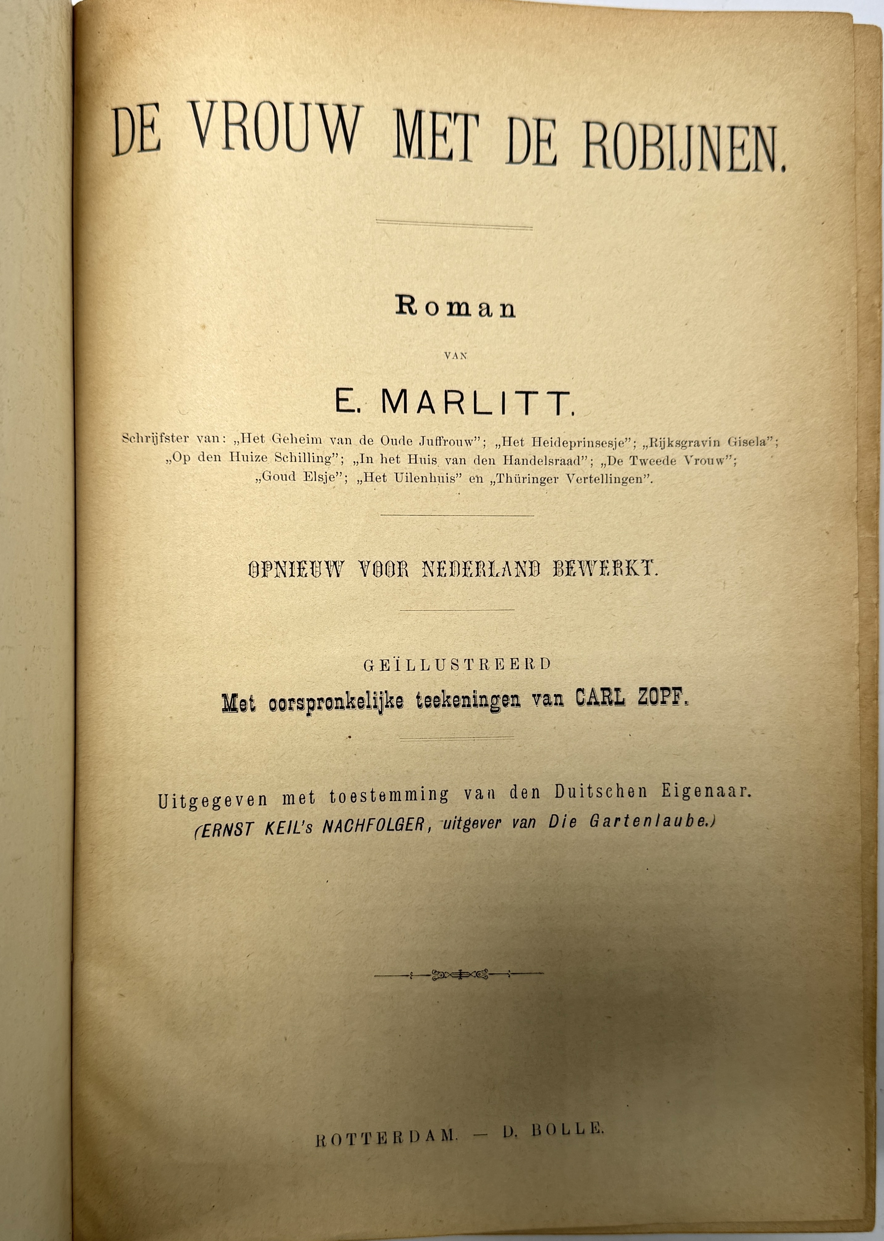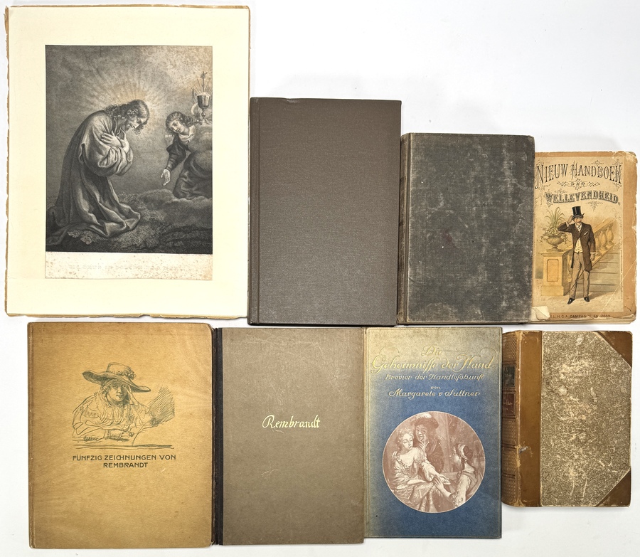 Elf gebonden boeken, uitgevoerd in linnen en halfleer, daterend uit de periode tweede helft 19e eeuw tot midden 20e eeuw. Het lot bevat literaire werken onder andere E. Marlitt en kunsthistorische titels onder andere Rembrandt en Hirth Das Deutsche Zimmer, Nederlands - en Duitstalig. Hierbij een losse fotogravure. Wil je de kavel in het echt bekijken? Kom naar de kijkdagen op 28, 29 en 30 november! |