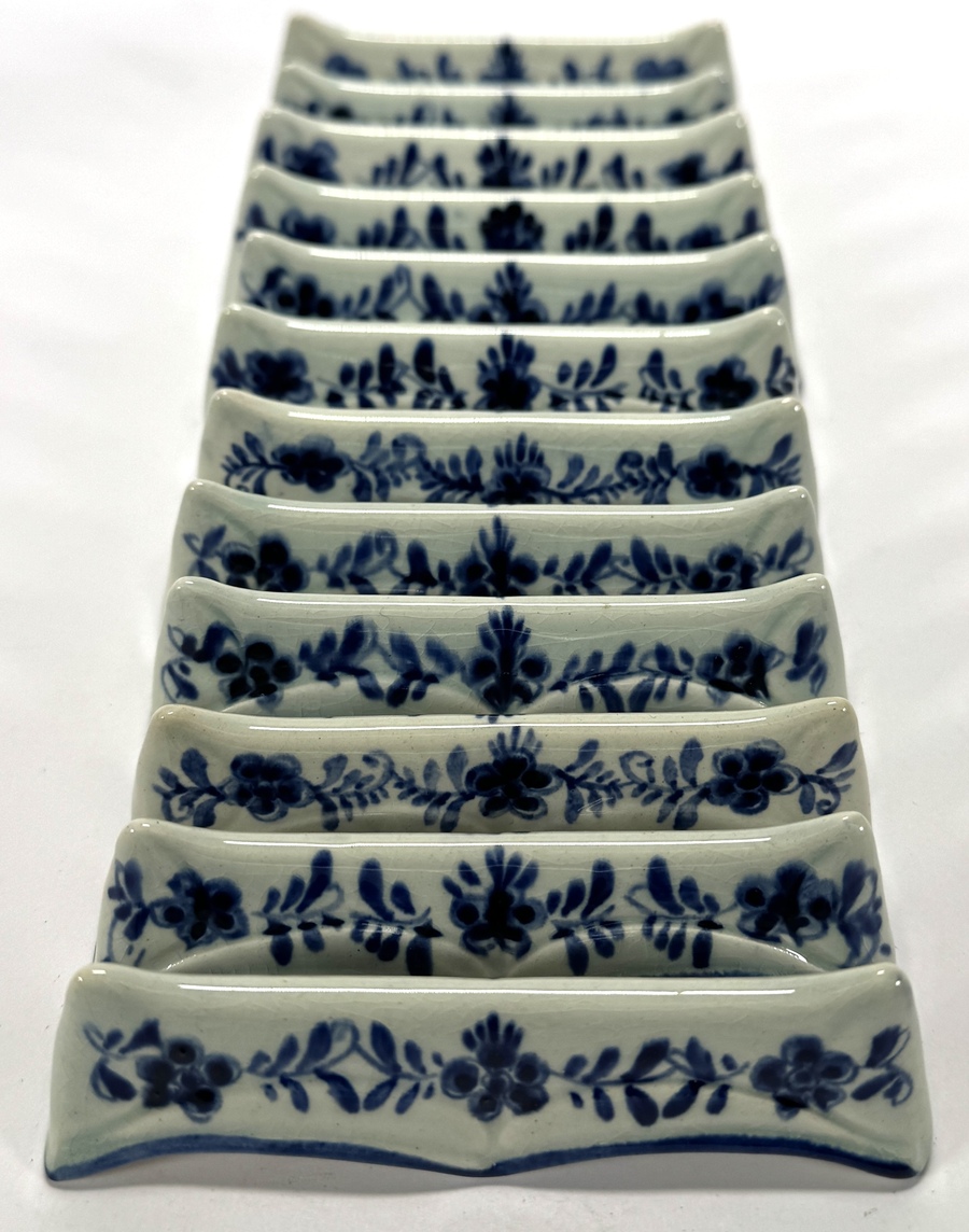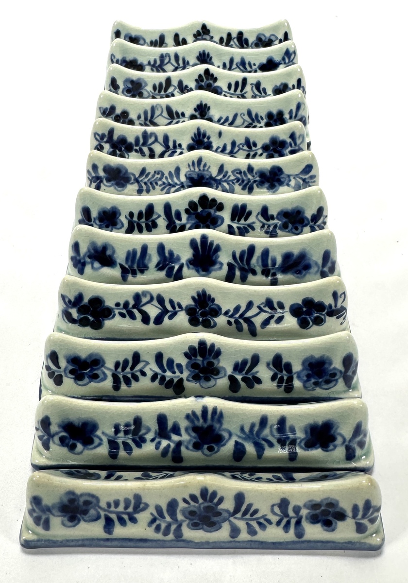 Messenset met Delfts blauwe messenleggers, Nederland, eerste helft 20e eeuw