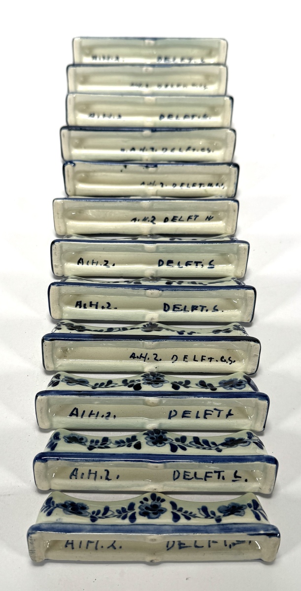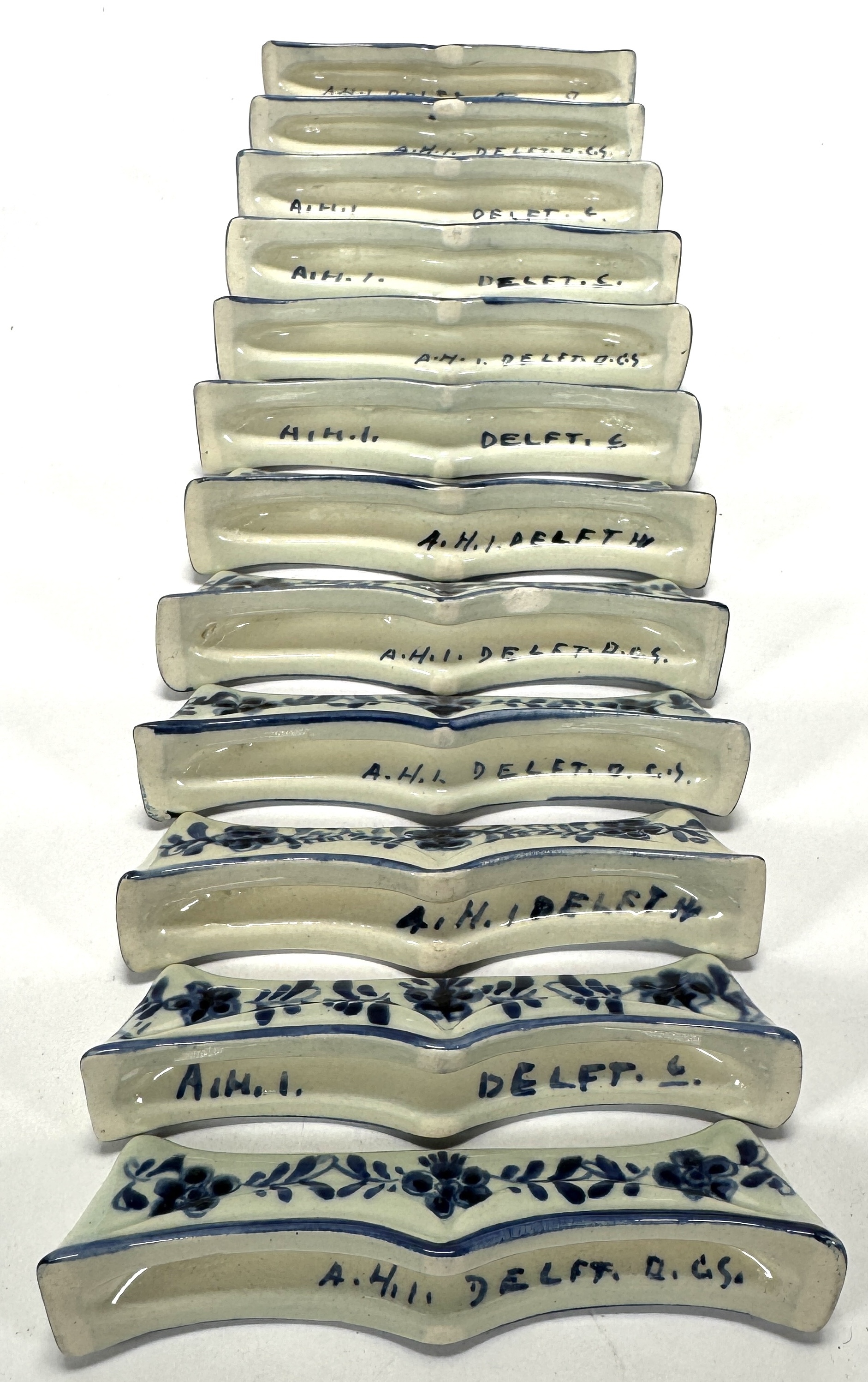 | Kavelnummer en naam | 1159. Messenset met Delfts blauwe messenleggers, Nederland, eerste helft 20e eeuw | |