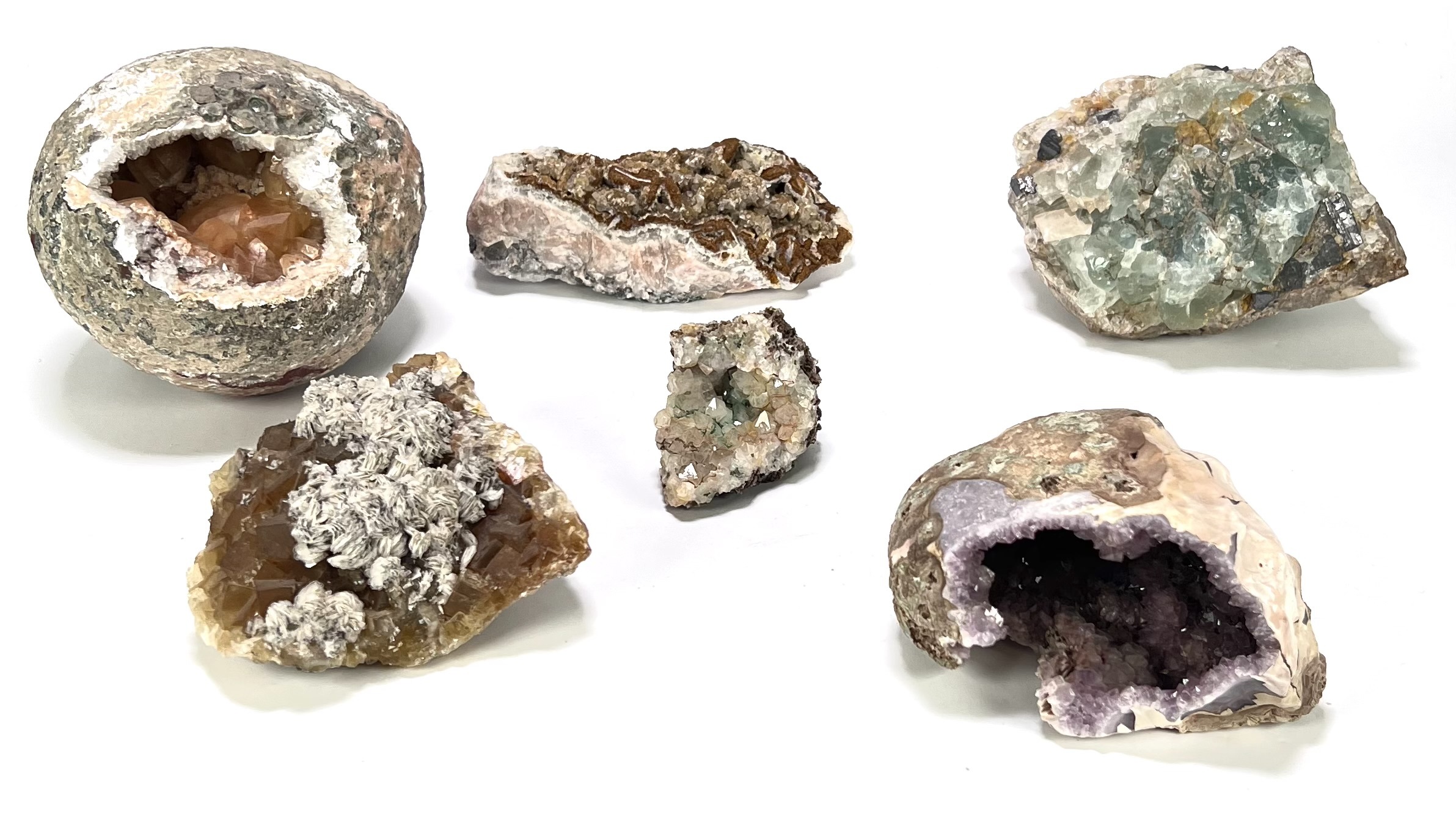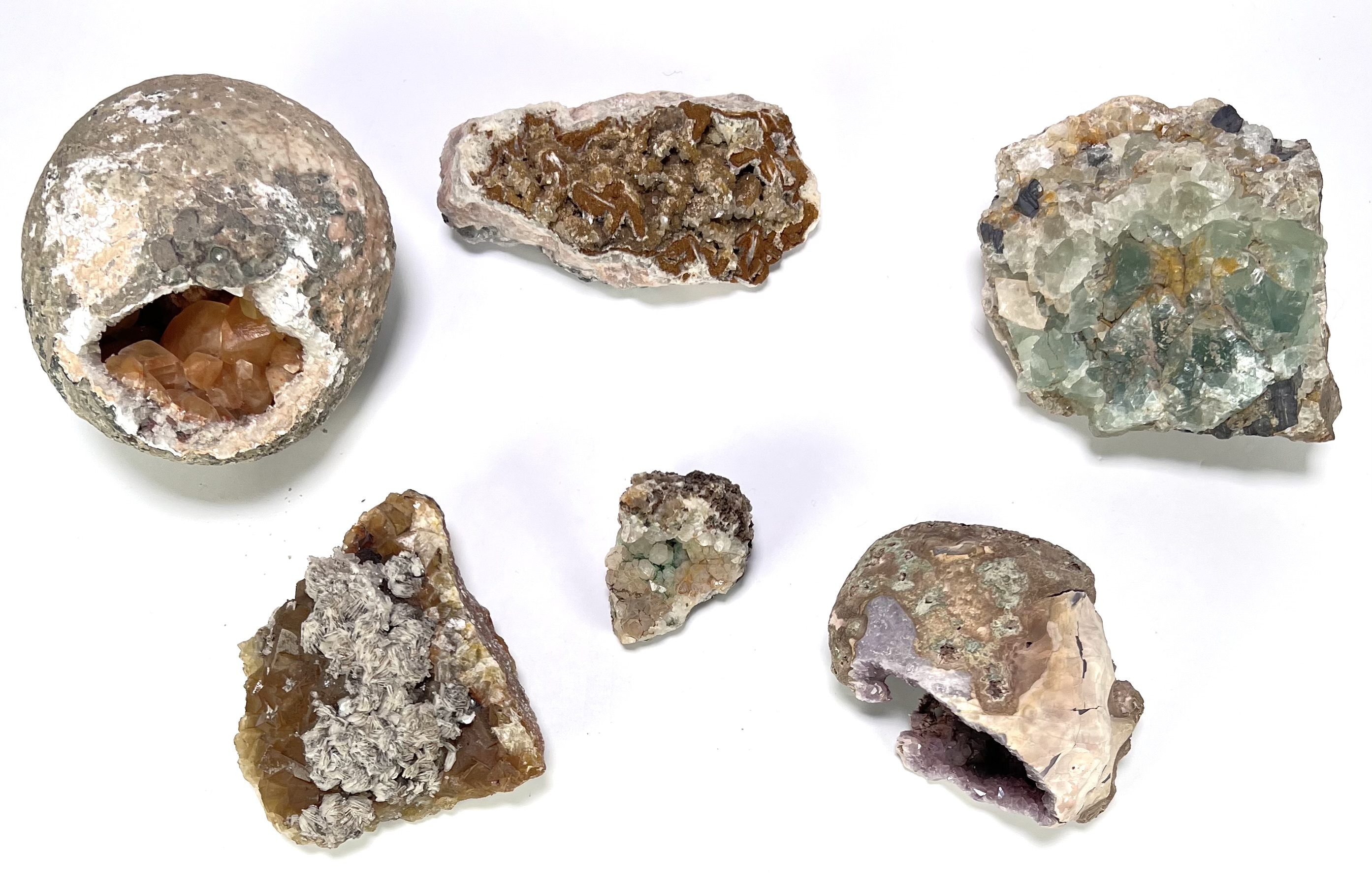 Mineralen - fluoriet, calciet en kwartsgeoden