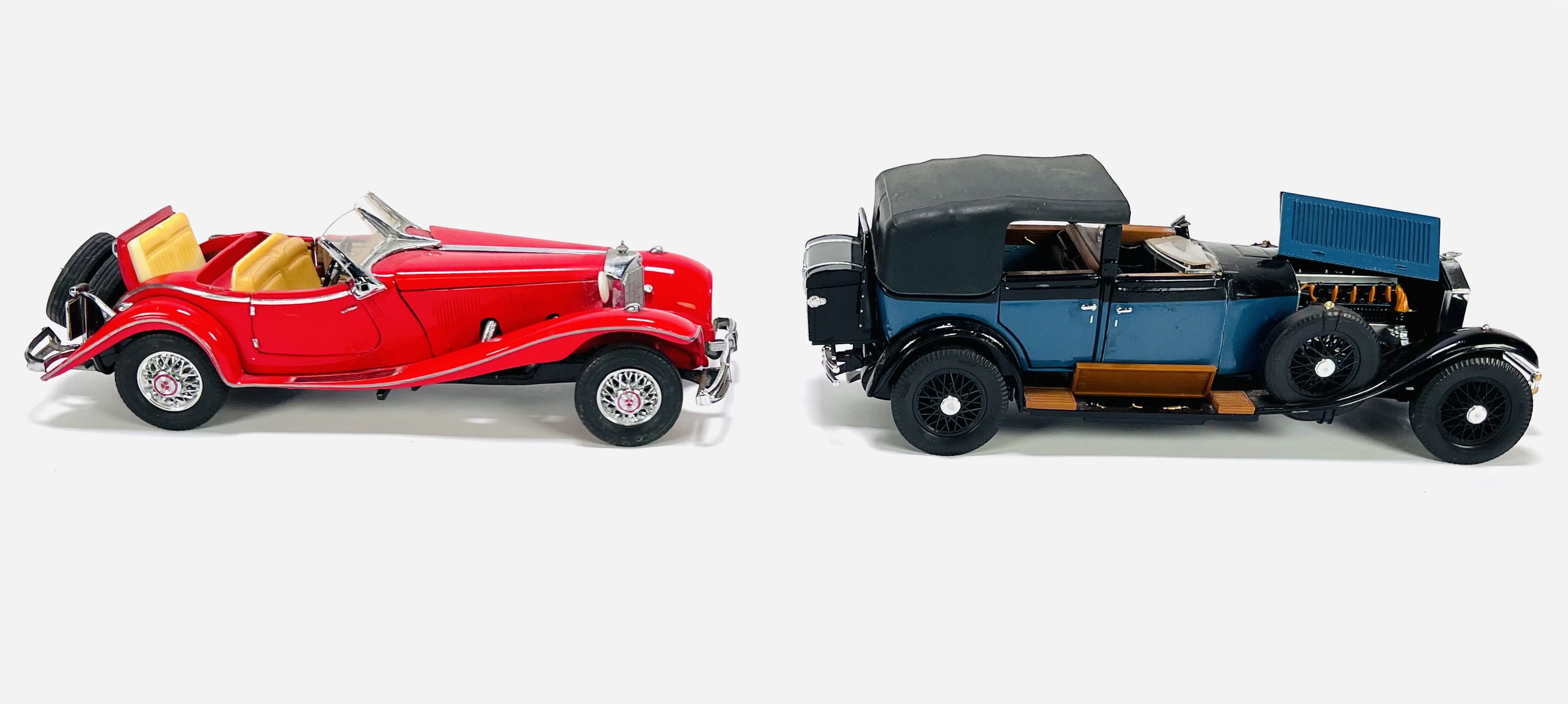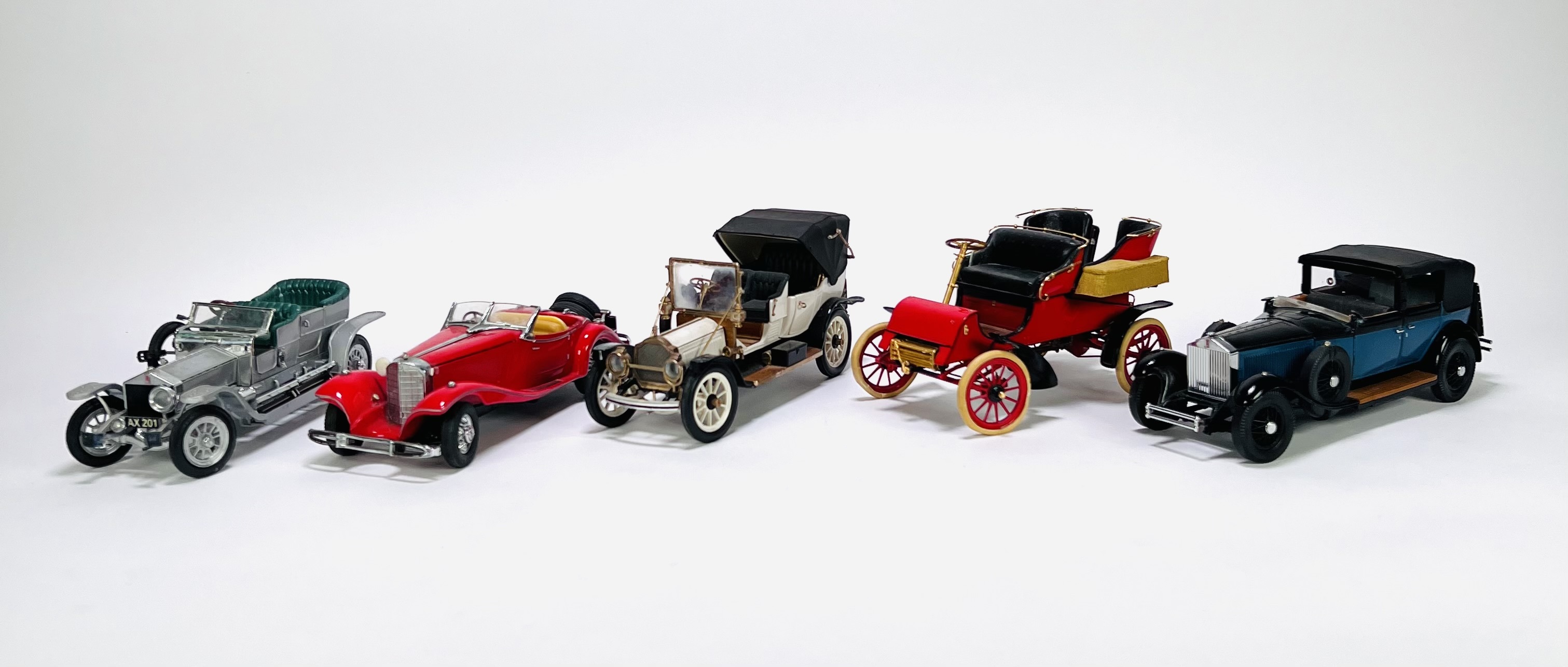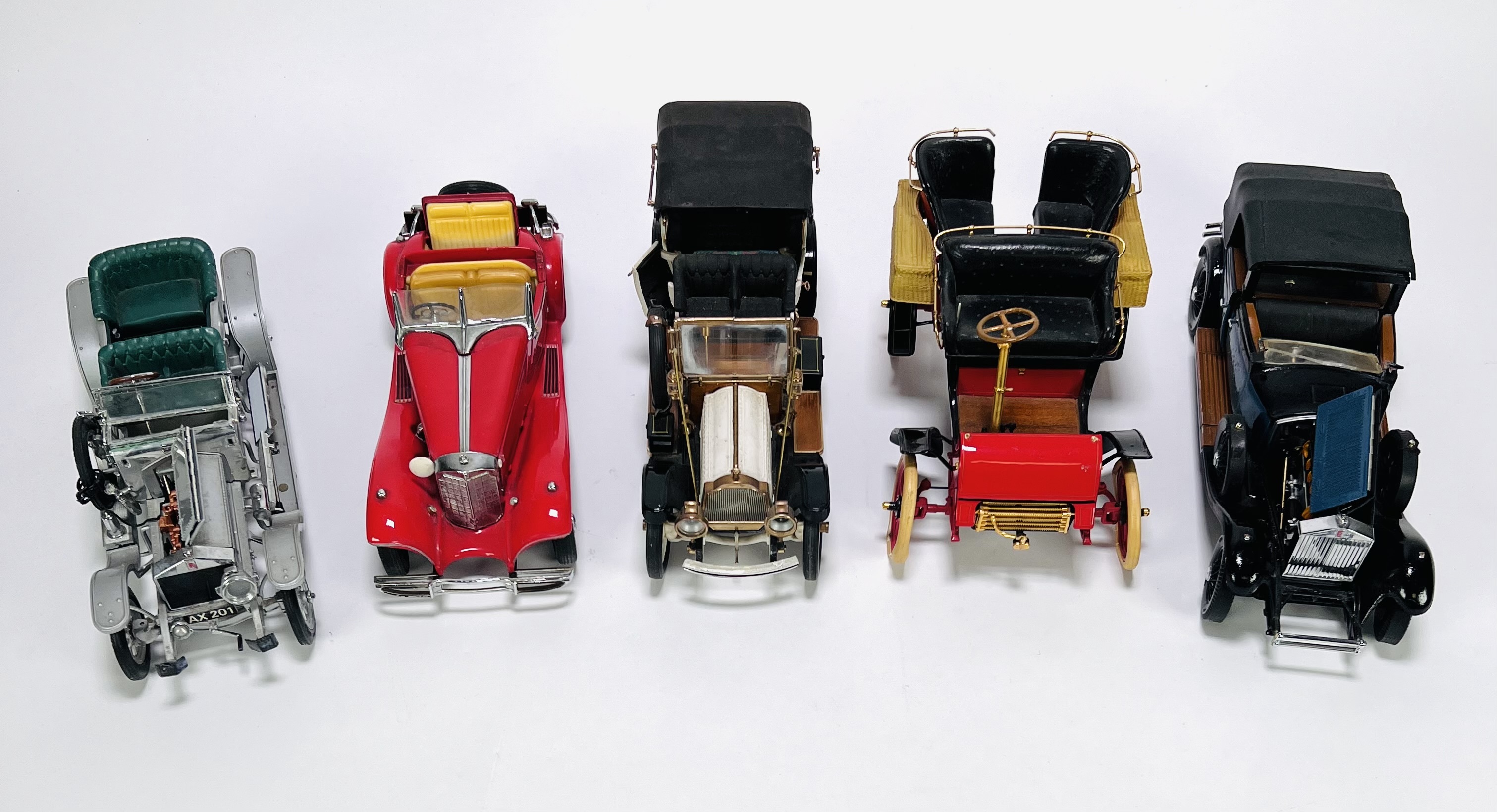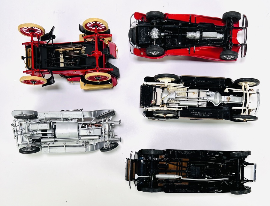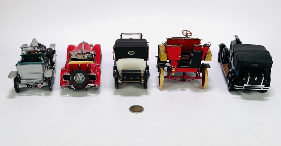 Vijf gedetailleerde gegoten metalen modelauto's (schaalmodellen) in de stijl van Franklin Mint. De modellen uit de tweede helft 20e eeuw representeren oldtimer auto's en zijn uitgevoerd in diverse kleuren met gedetailleerde chassis en motoren. Wil je deze modelauto's in het echt bekijken? Kom naar de kijkdagen op 28, 29 en 30 november! |