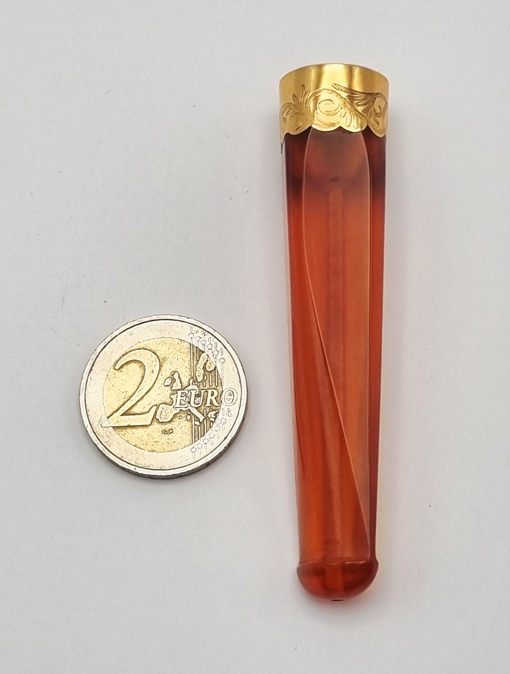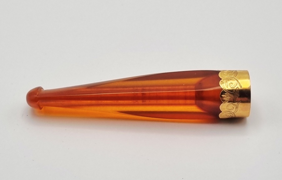 | Kavelnummer en naam | 1202. Barnsteen sigarettenhouder met gouden applicatie, Jugendstil, begin 20e eeuw | |
