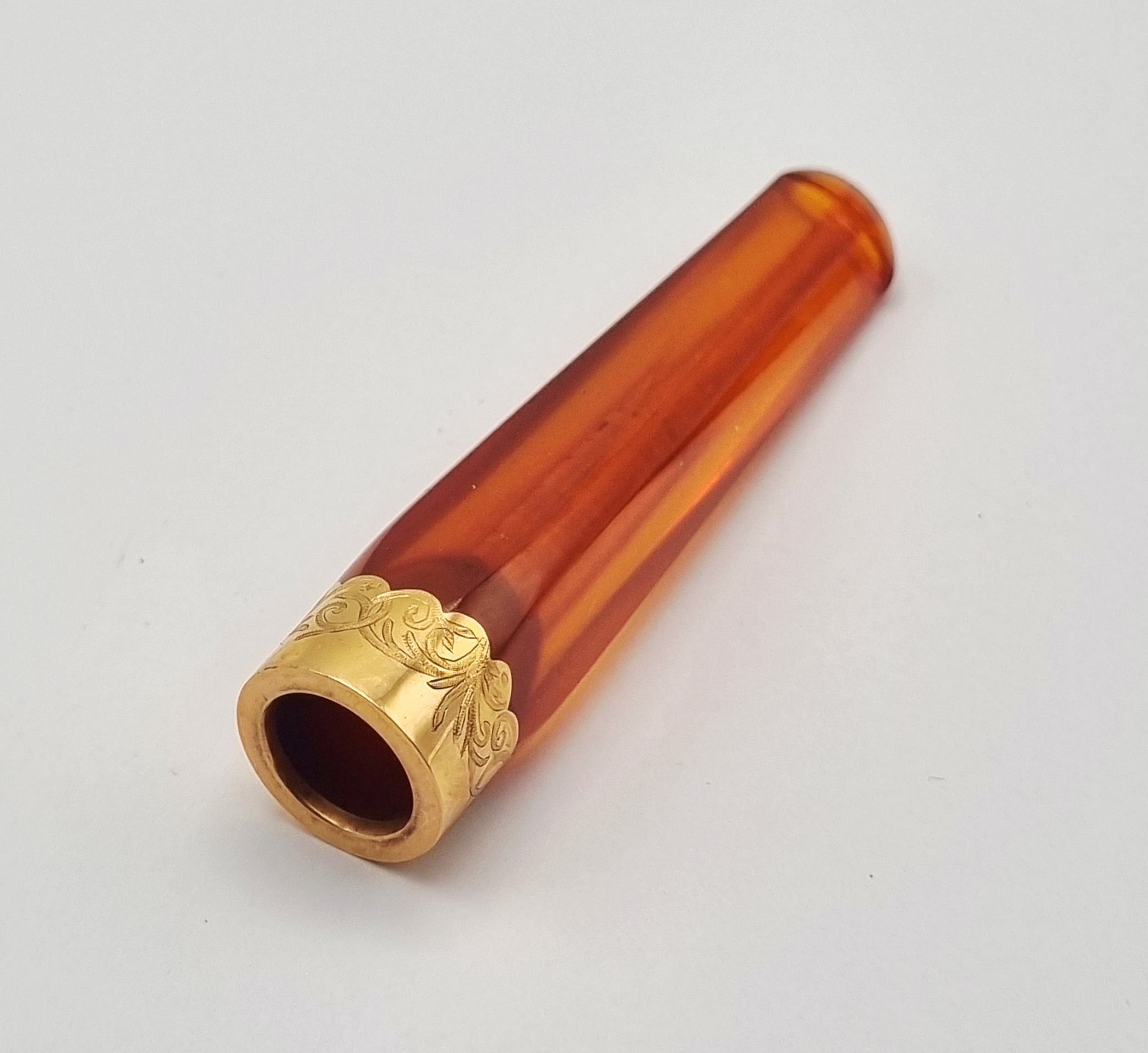 Barnsteen sigarettenhouder met gouden applicatie, Jugendstil, begin 20e eeuw