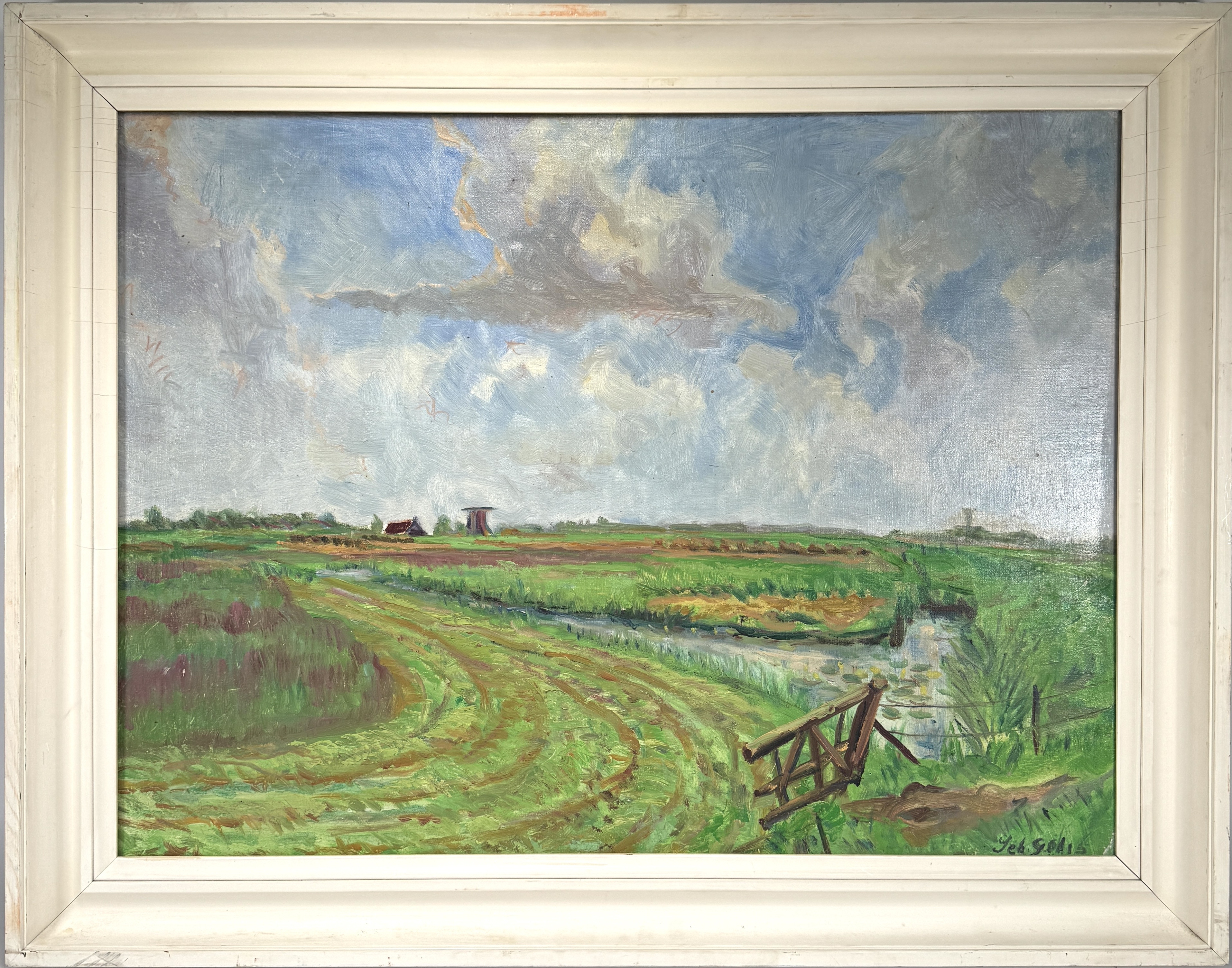 Olieverfschilderij – polderlandschap, Nederland, tweede helft 20e eeuw