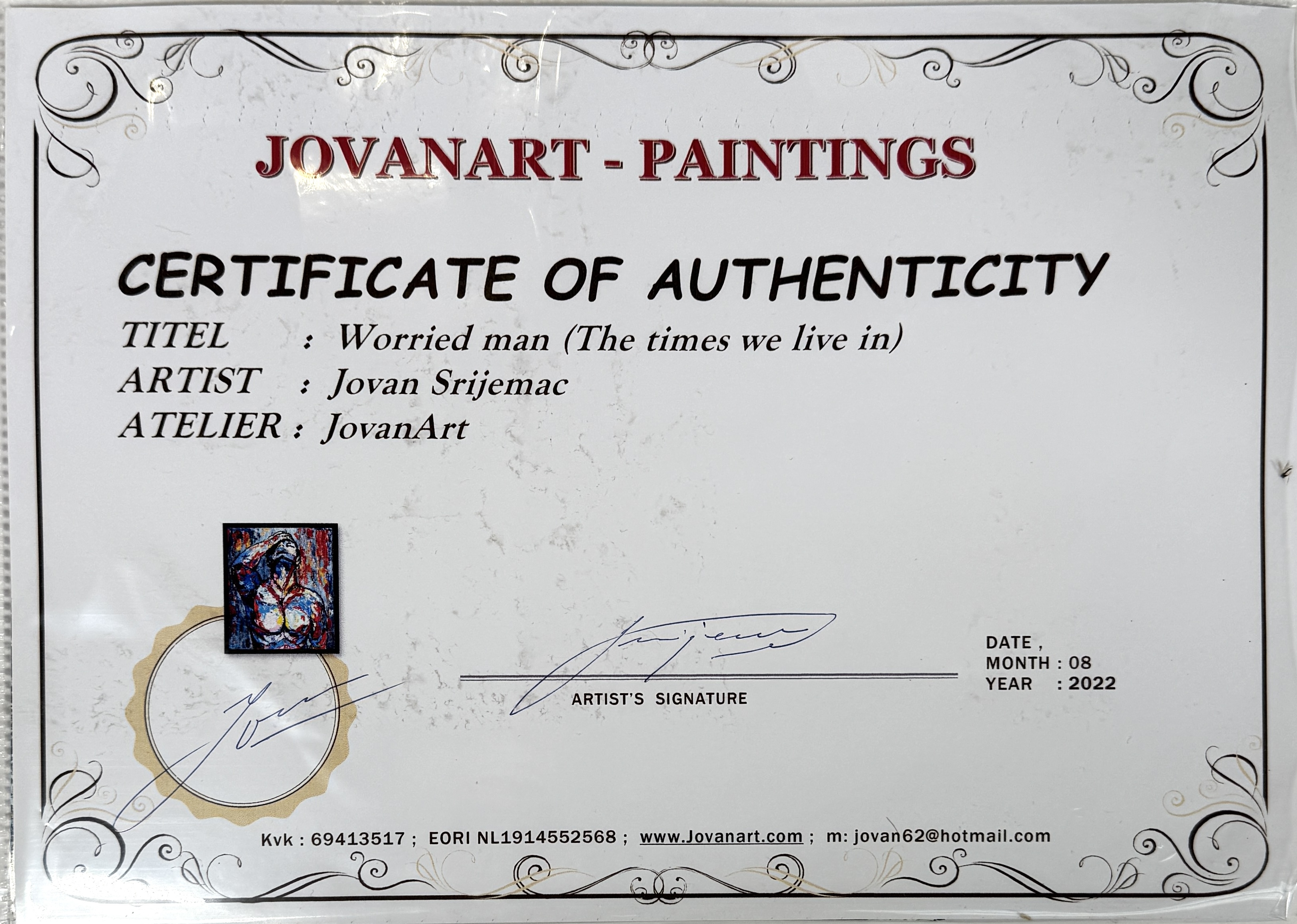 Olieverfschilderij, Jovan Srijemac, "Worried man", 2022