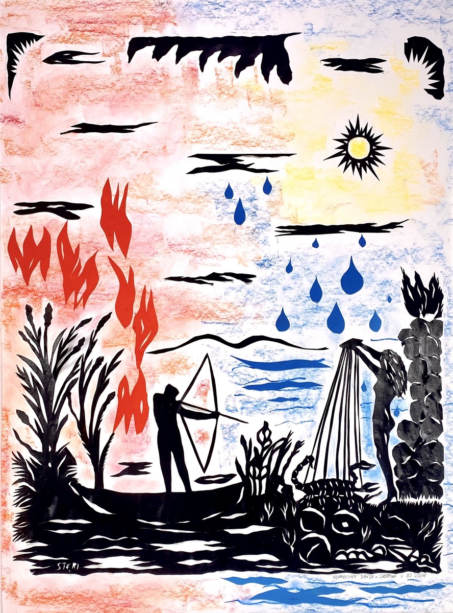 Mixed media Stefan Ritler "Sternzeichen Schütze u. Skorpion", Duitsland, 1981