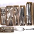 Plet bestek in klassiek gladde stijl, vervaardigd van gegalvaniseerd metaal, ca. 1920–1950. De set bevat messen, vorken, lepels en een taartschep met een strak heft. De stukken zijn grotendeels georganiseerd in de oorspronkelijke kartonnen verpakking. Wil je dit bestek in het echt bekijken? Kom naar de kijkdagen op 28, 29 en 30 november! |