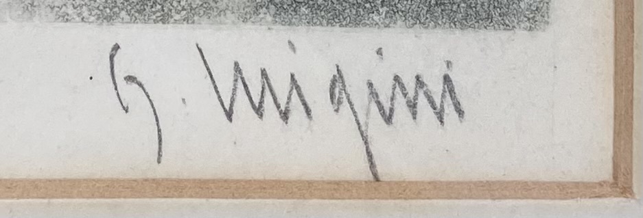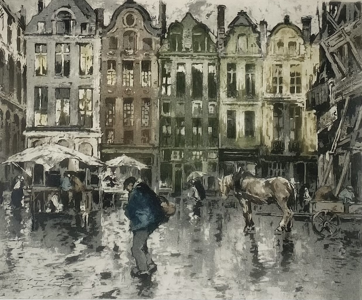 Aquatint, Ferdinand Luigini – regenachtig stadsplein, eerste helft 20e eeuw