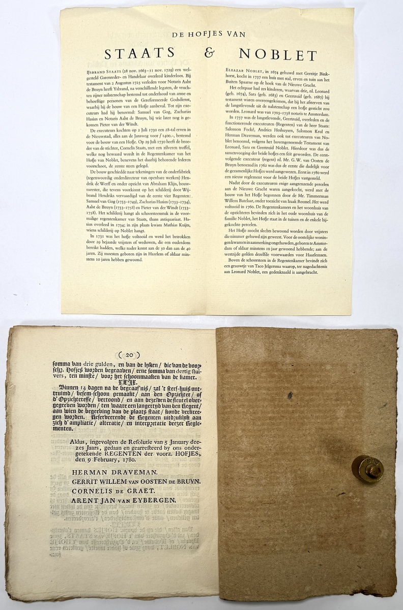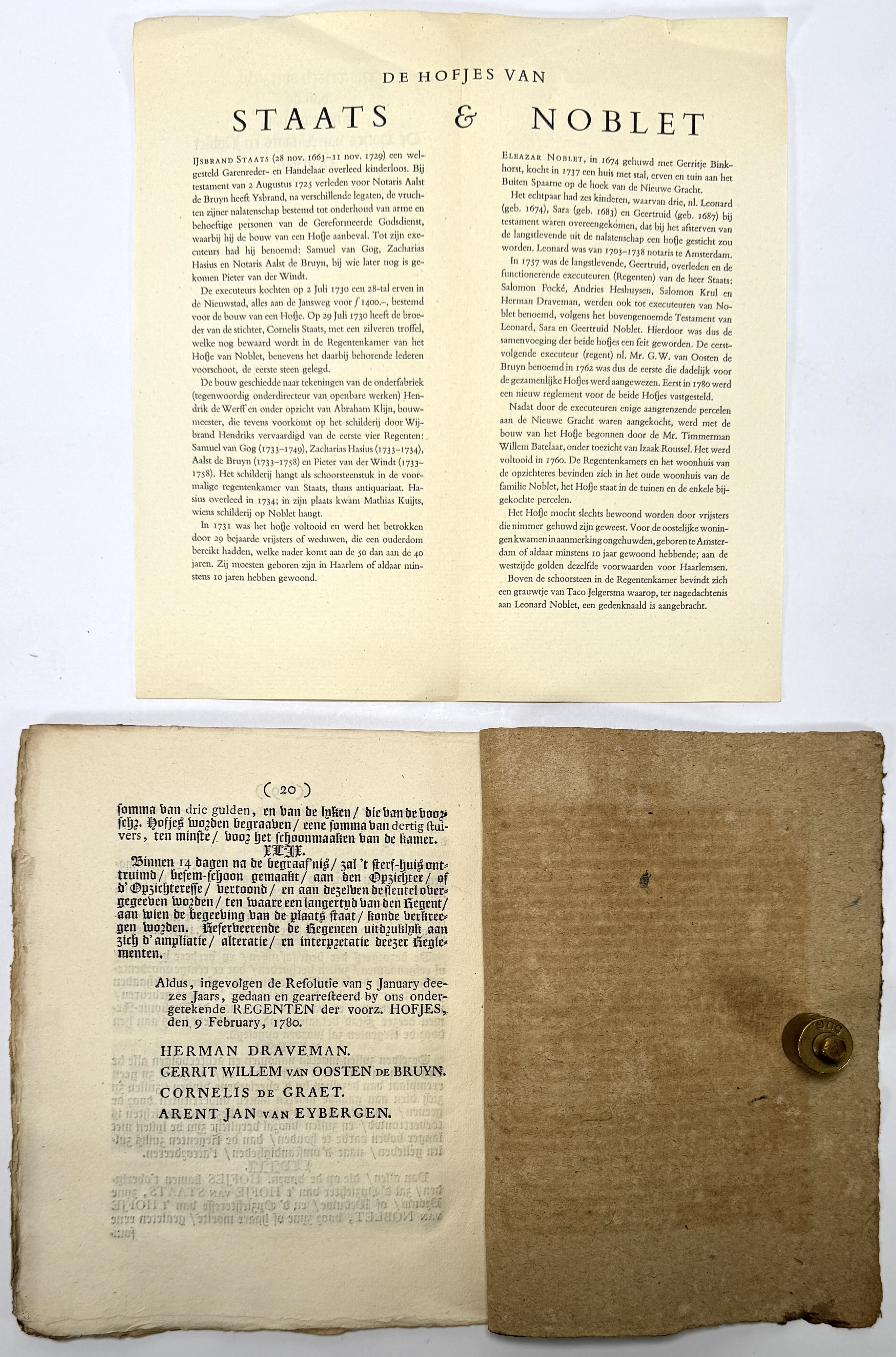 Papieren reglementen Hofje Staats en Noblet, Haarlem, 1780