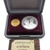 | Afmetingen | Gouden 900/1000 tientje diameter 22,5 mm en gewicht 6,72 gram. Zilveren 925/1000 penning diameter 38 mm en gewicht 25 gram. | |