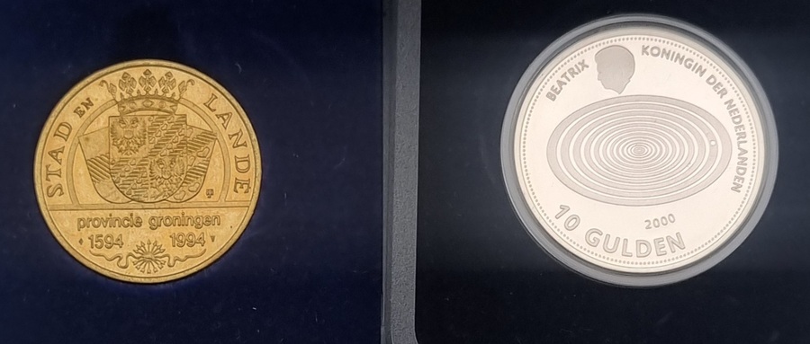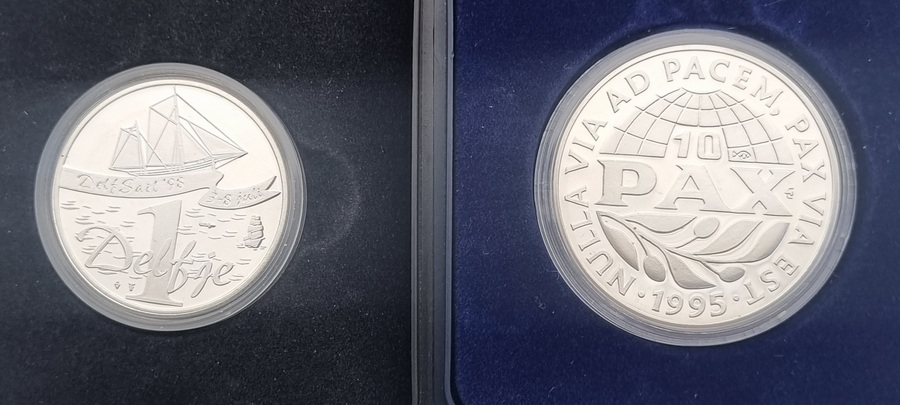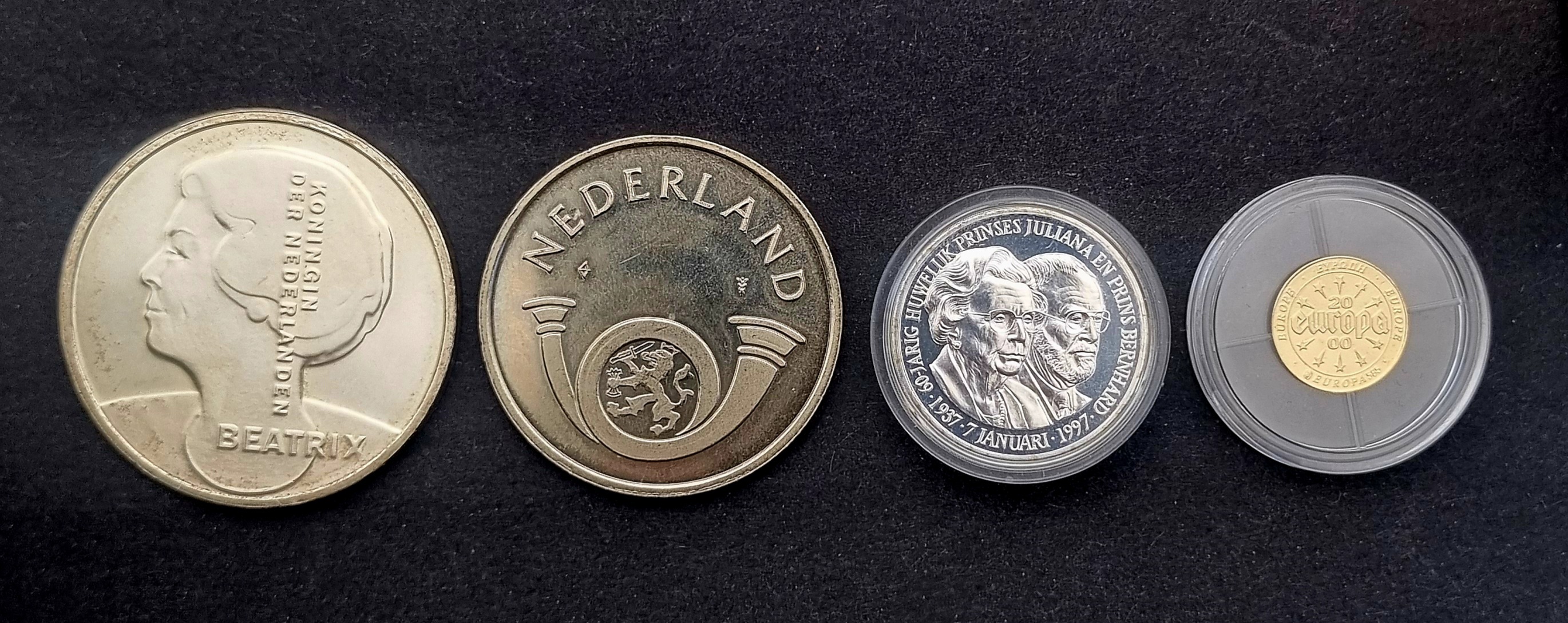 Lot van Nederlandse herdenkingsmunten en penningen uit de periode 1994 tot 2002, uitgegeven door de Koninklijke Nederlandse Munt. De set omvat zilveren guldens onder andere 1 gulden Delfsail 1998, 10 gulden millenniummunt 2000, de huwelijksmunt 1997, een Stad en Lande penning en post penning . De munten zijn geslagen in proof kwaliteit en bevatten de portretten van Koningin Beatrix. Alsook een Euro kennismaking set. Klaar om te bieden? Registreer je nu en doe mee aan de veiling! |