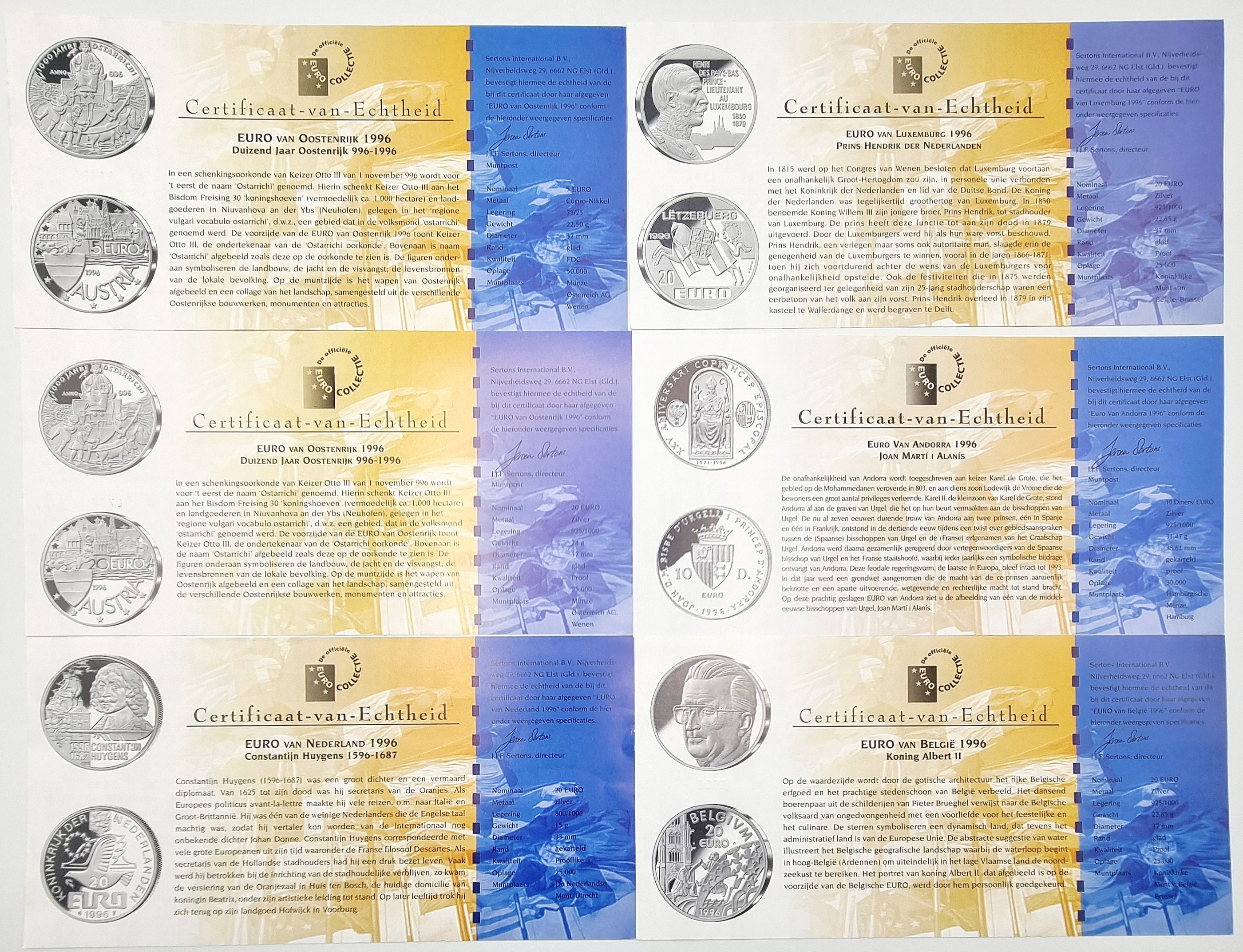 Zilveren munten, Euro Trial collectie, eind 20e eeuw