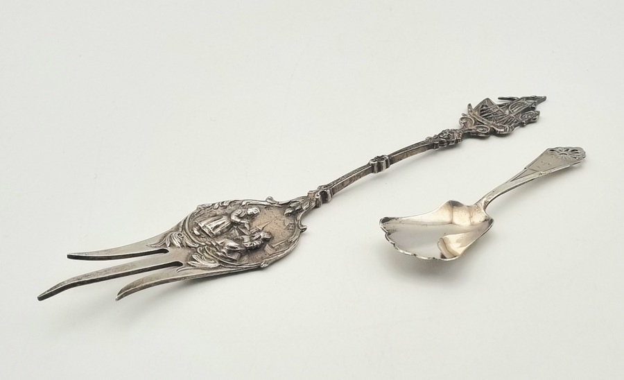 Zilveren vork en suikerschepje - Nederland, 1921 en 1957