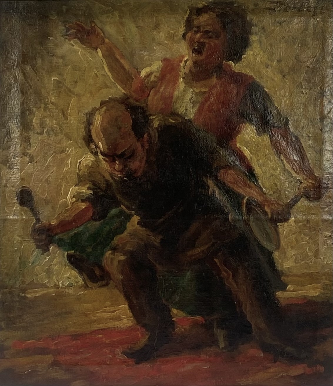 Olieverfschilderij, Doris Bertels – echtelijke ruzie, midden 20e eeuw