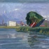 Olieverfschilderij, Ruurd Elzer - gezicht op Groningen, tweede helft 20e eeuw