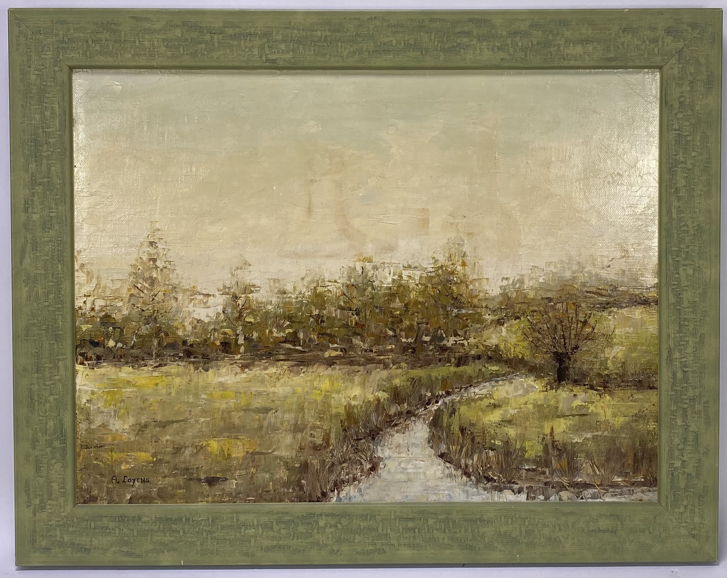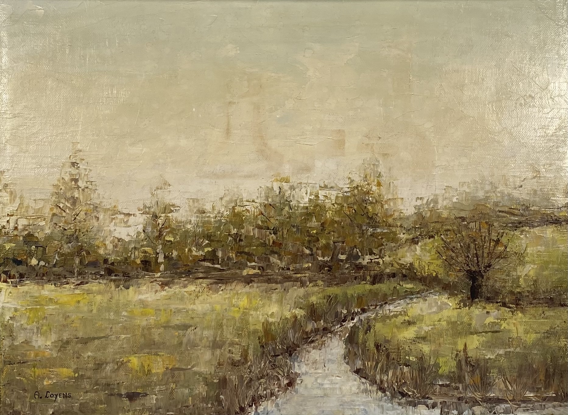 Schilderij door de Nederlandse schilder André Loyens (1941) in een post Haagse School landschapsstijl uit circa 1960–1980. Het werk is uitgevoerd in olieverf op doek en toont een rivierlandschap met een slingerende waterloop. Het schilderij is linksonder gesigneerd 'A. Loyens'. Dit schilderij zelf beoordelen? Je bent welkom op onze kijkdagen op 28, 29 en 30 november! |