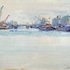 Aquarel, J.L. van der Baan – havengezicht met kranen, 1976
