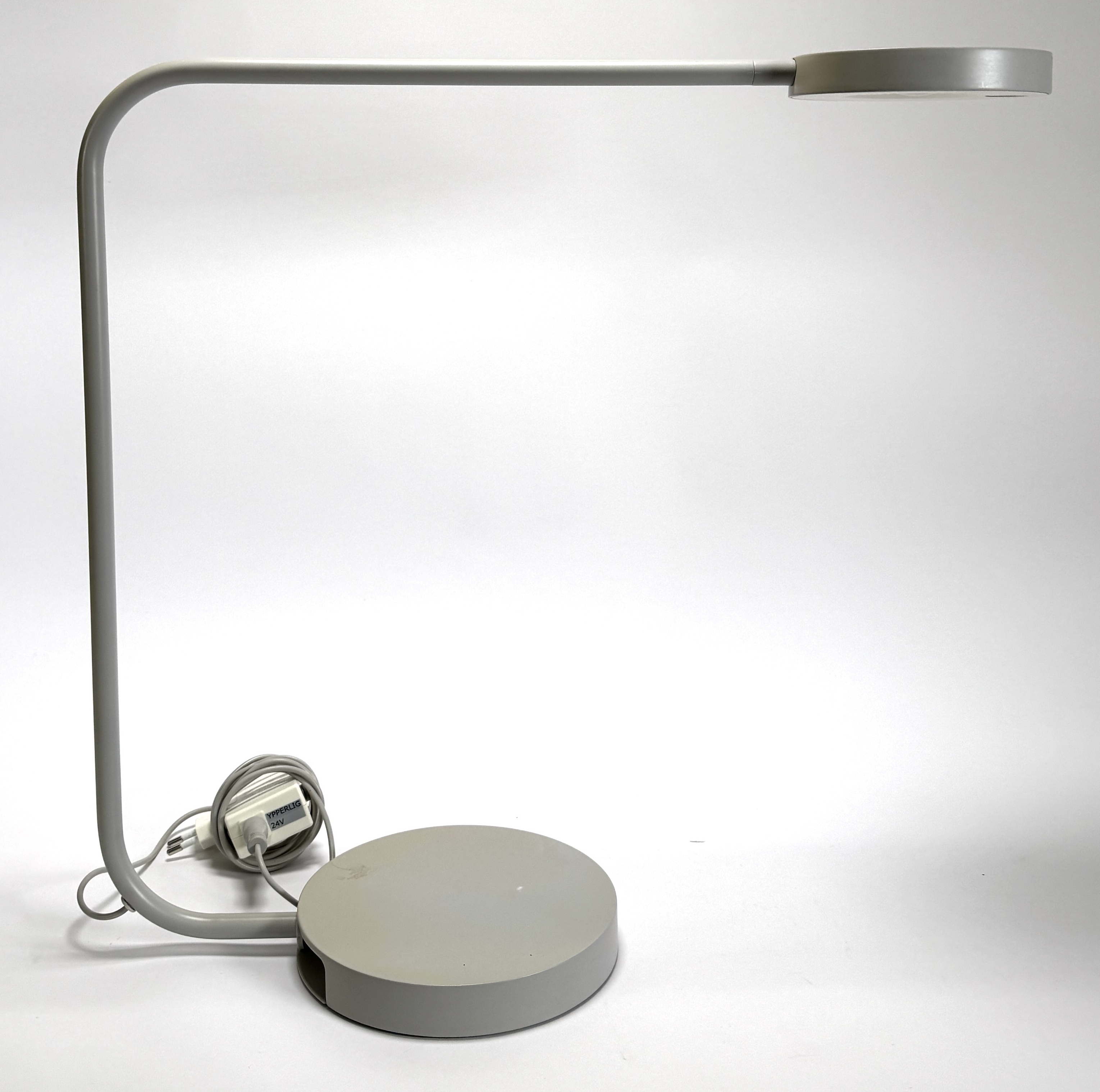 Moderne LED tafellamp, model YPPERLIG, voortgekomen uit de samenwerking tussen IKEA en het Deense designmerk Hay in 2017. De lamp is vervaardigd uit metaal en kunststof, uitgevoerd in een strak Scandinavisch minimalistisch design met een platte ronde basis en een vierkante arm. De lamp is afgewerkt in een gedempte grijsgroene tint en heeft een geïntegreerde LED-eenheid. Geïnteresseerd? Bezoek onze kijkdagen op 28, 29 of 30 november van 11:00 tot 17:00 uur! |