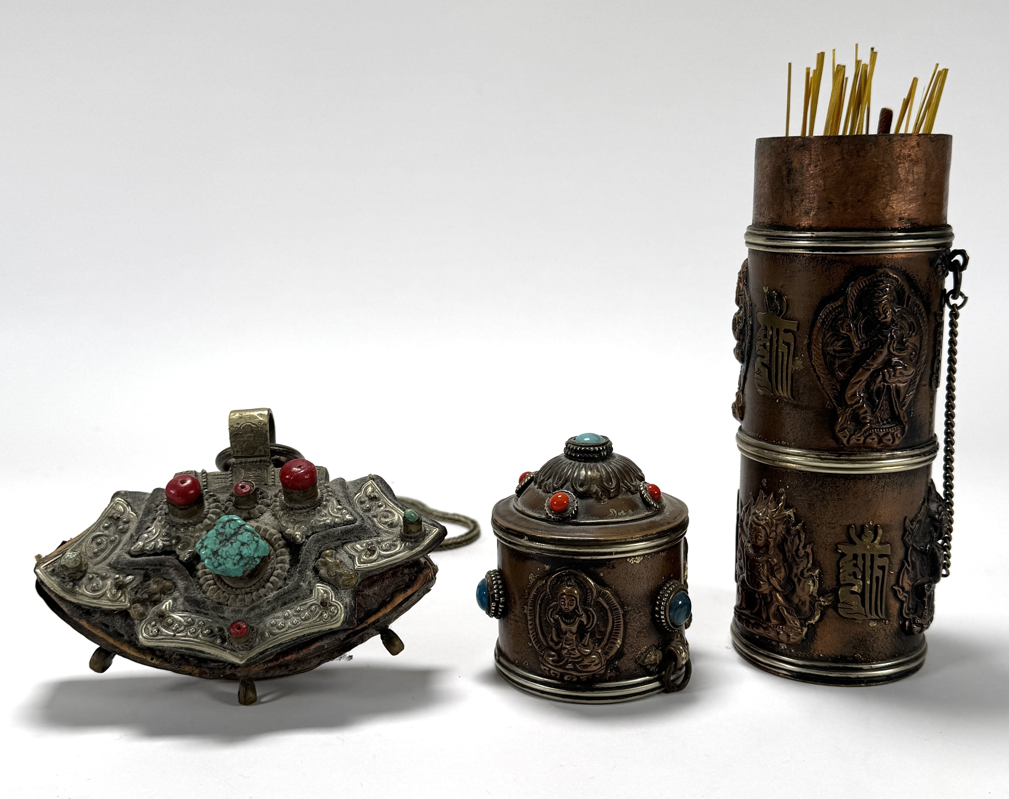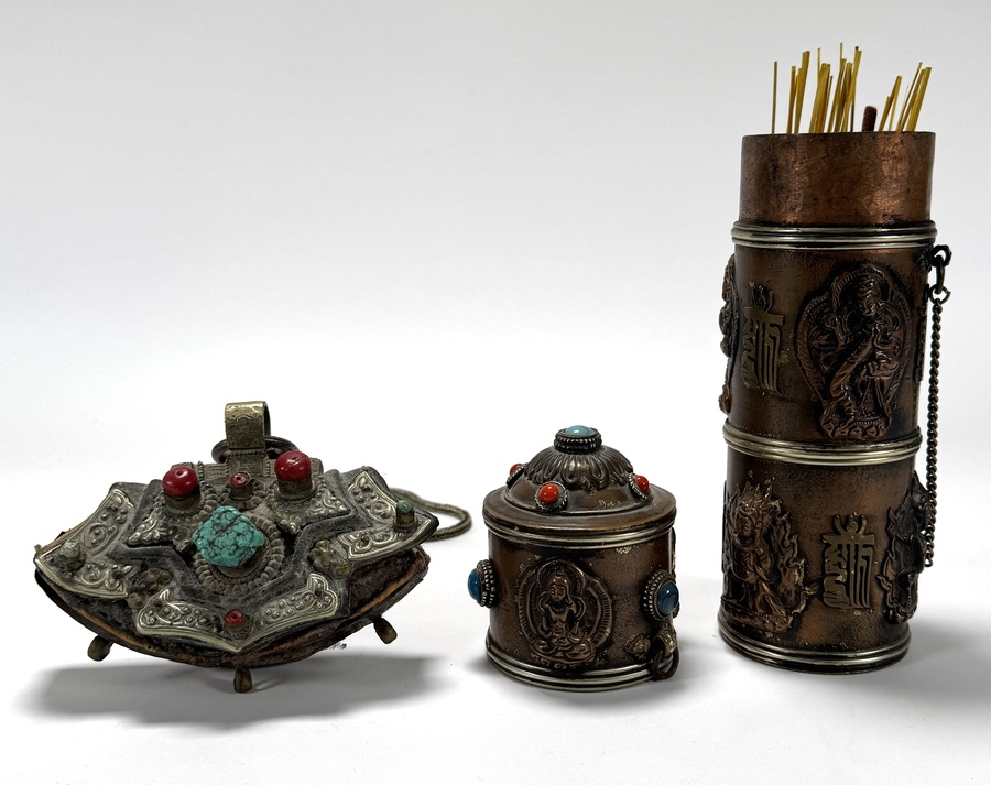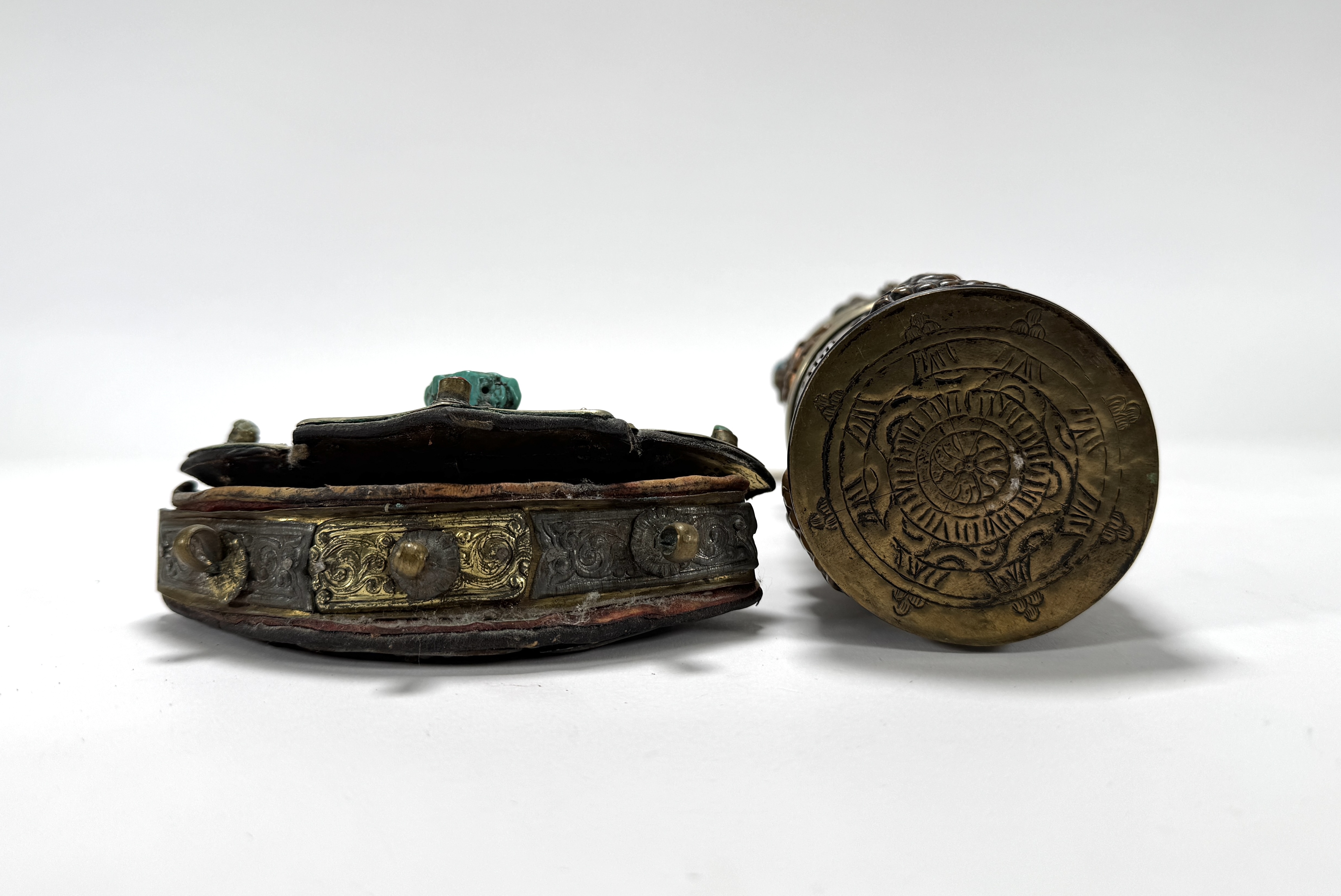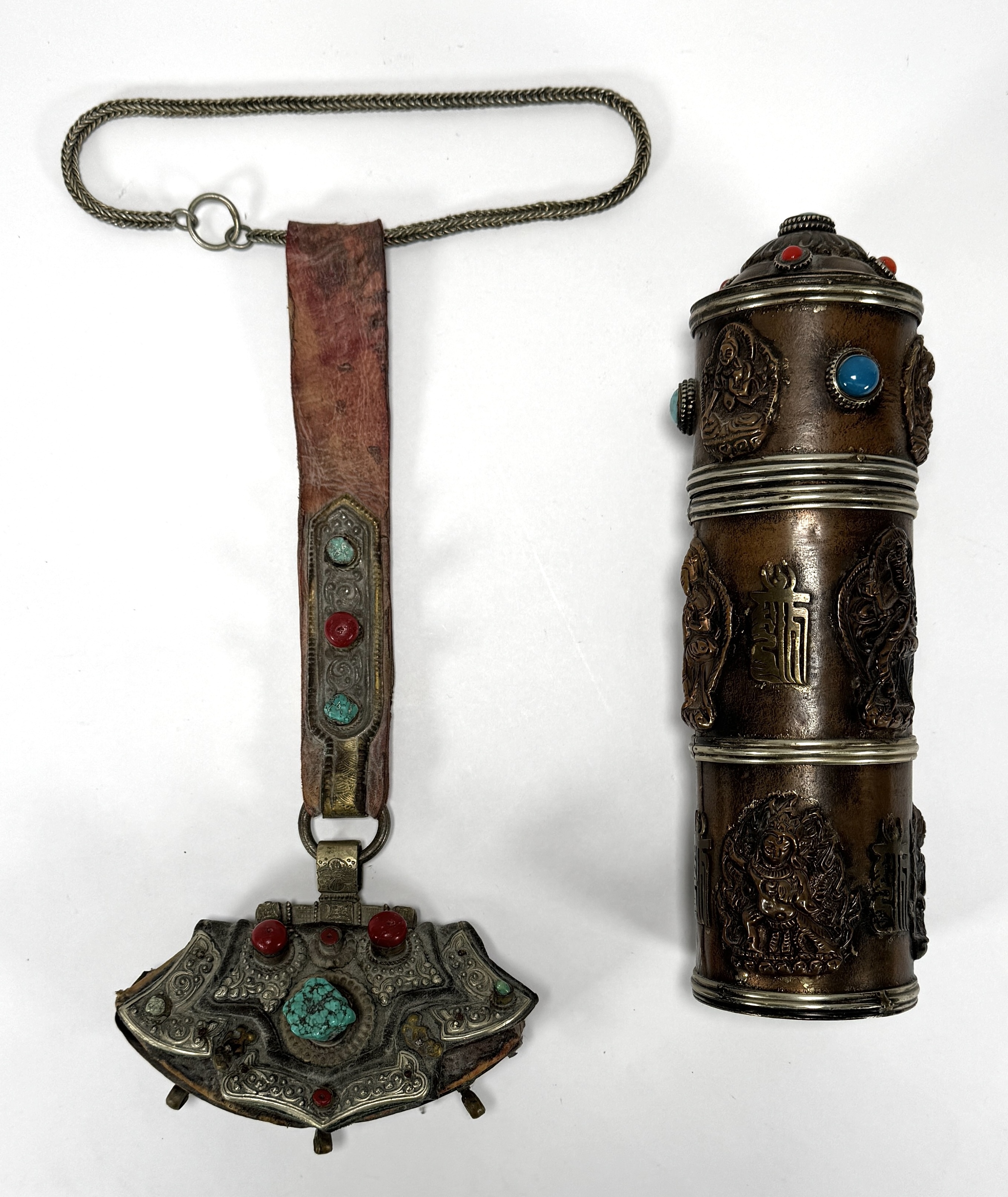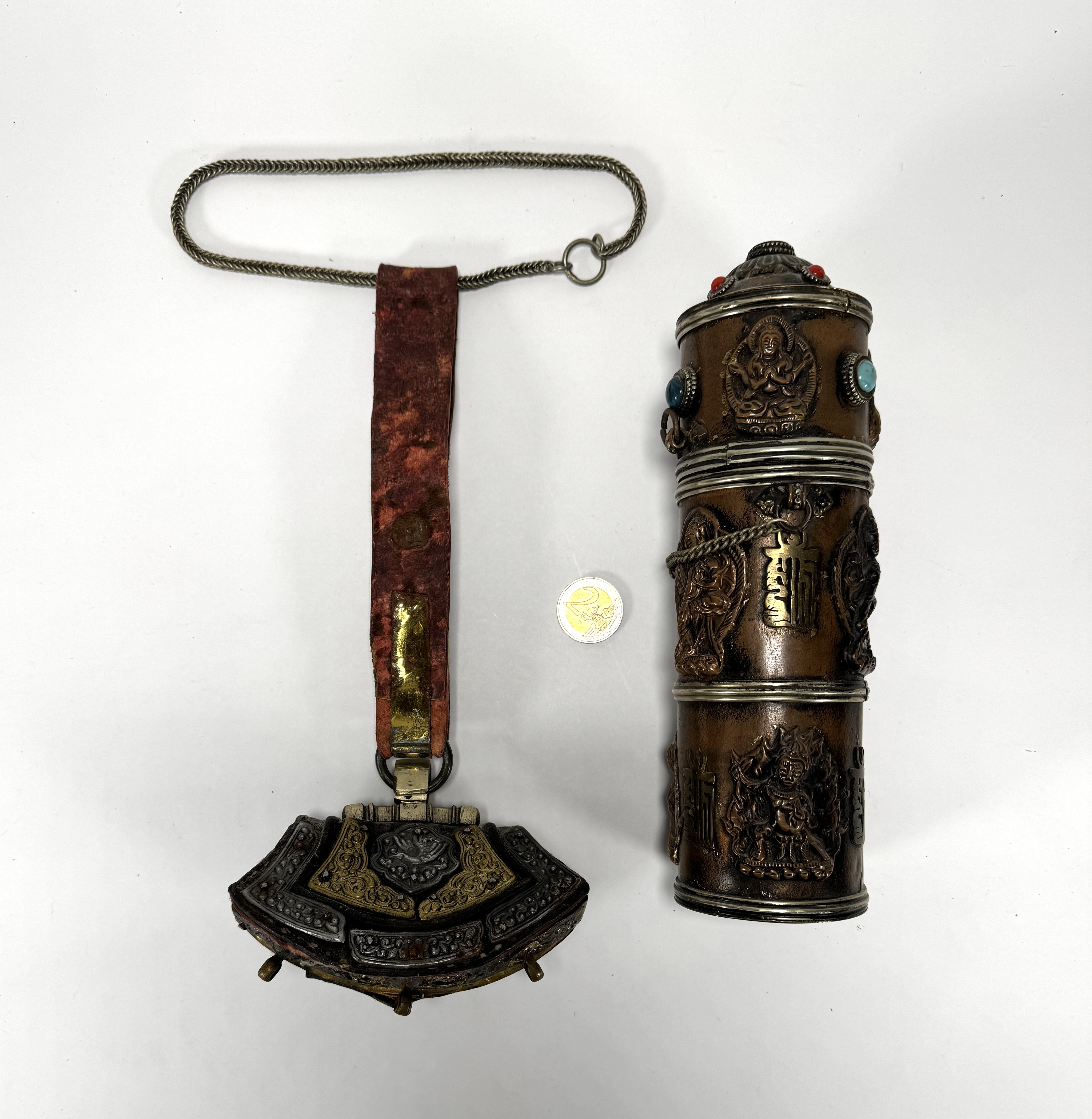 Amuletbuidel en cilindrische houder, Tibet, eerste helft 20e eeuw