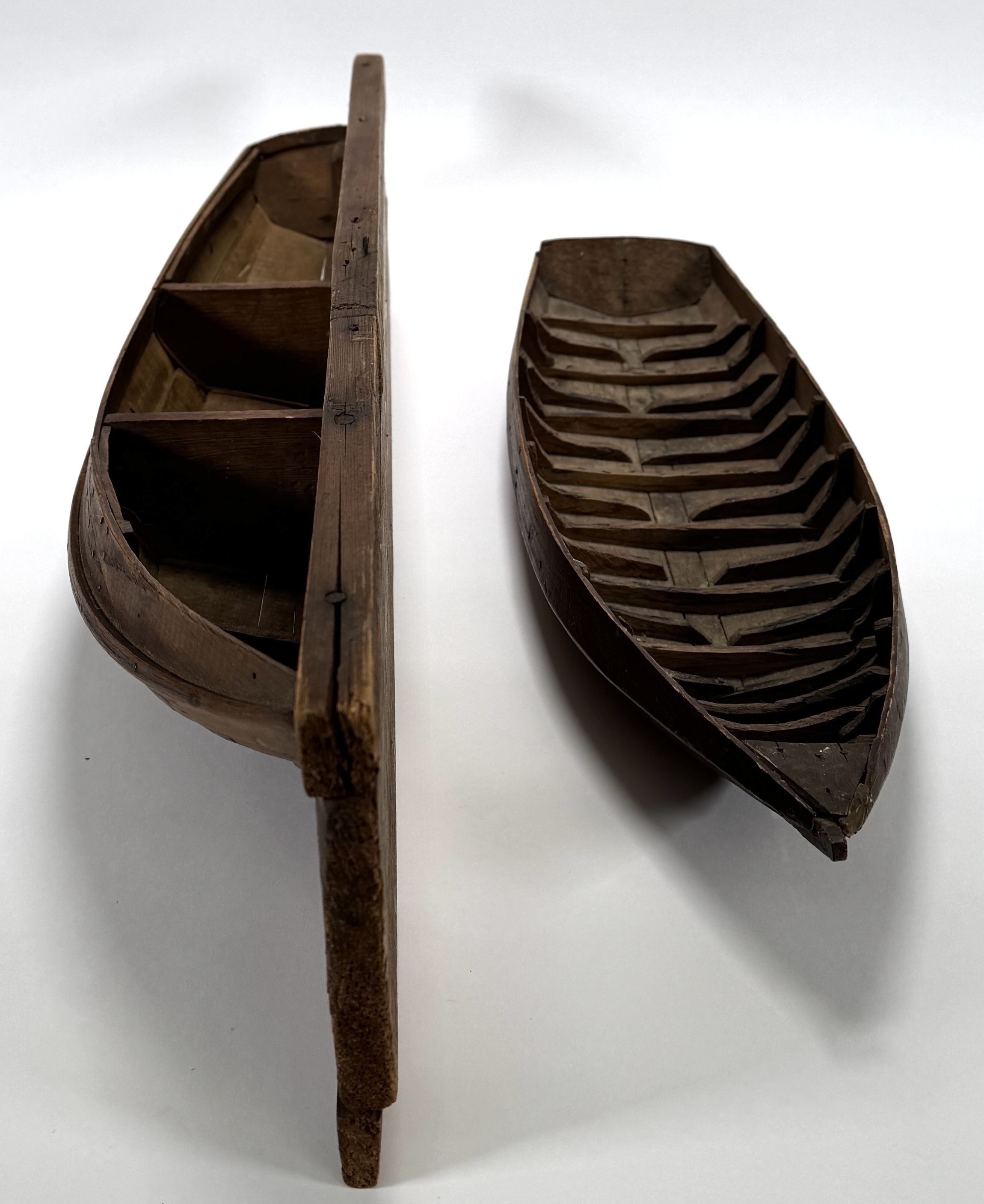 Houten scheepsmodel, – halfmodel en romp, eerste helft 20e eeuw