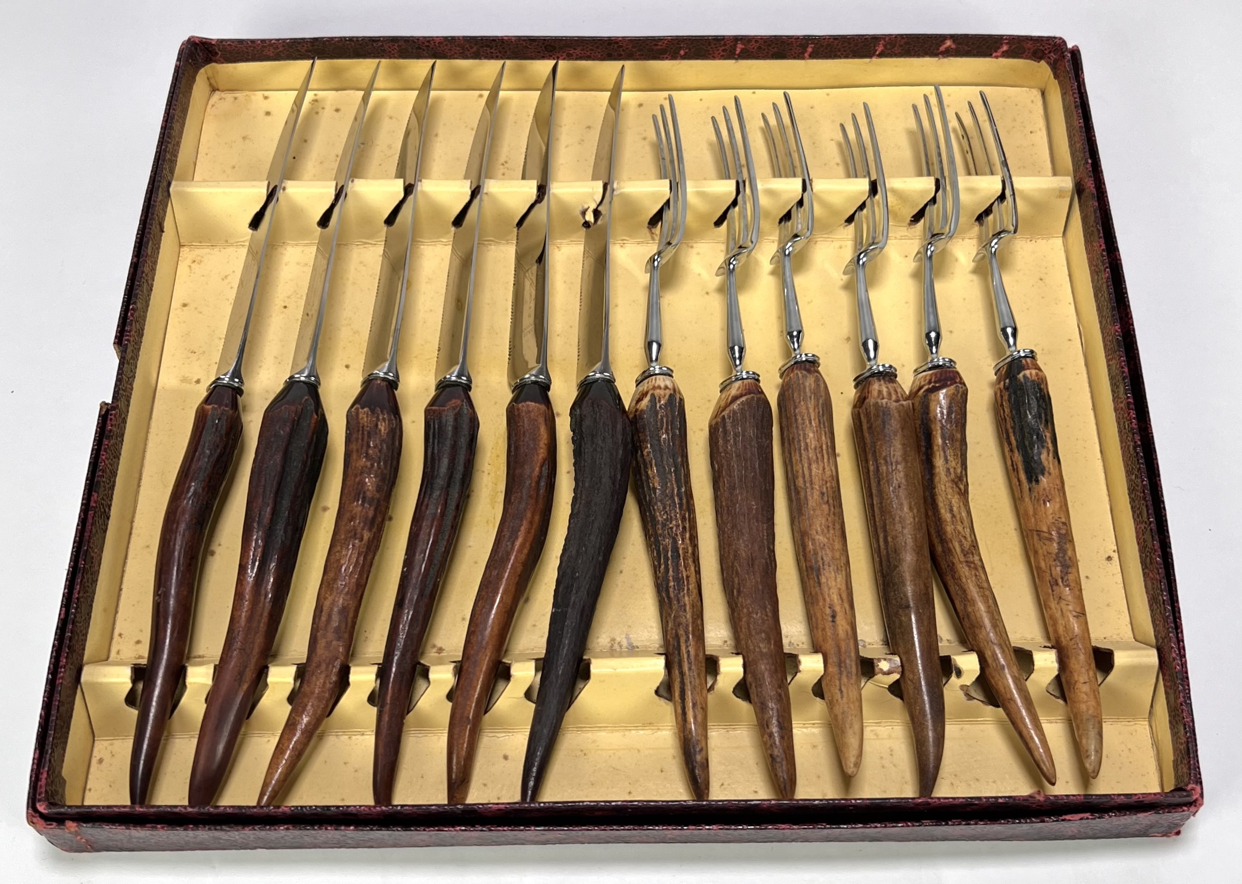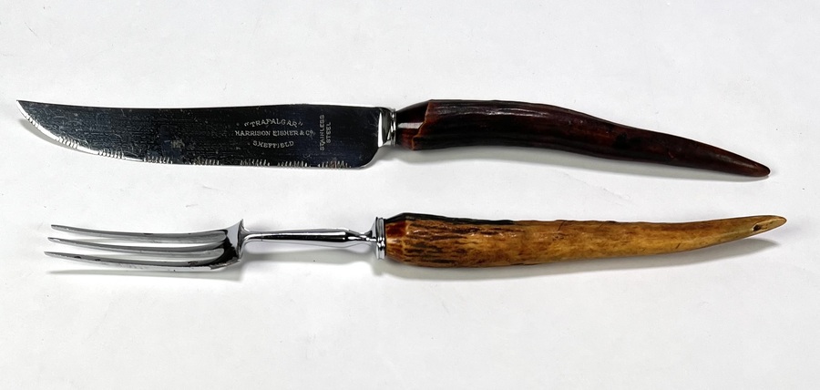Wildbestek met hertengewei handvatten, Harrison Fisher & Co, Sheffield, ca. 1900-1930