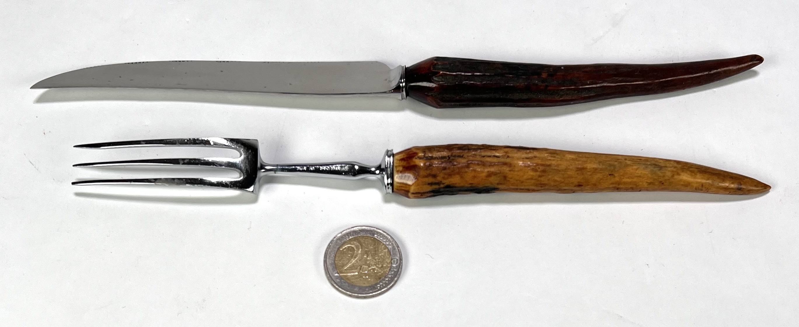 | Kavelnummer en naam | 1527. Wildbestek met hertengewei handvatten, Harrison Fisher & Co, Sheffield, ca. 1900-1930 | |
