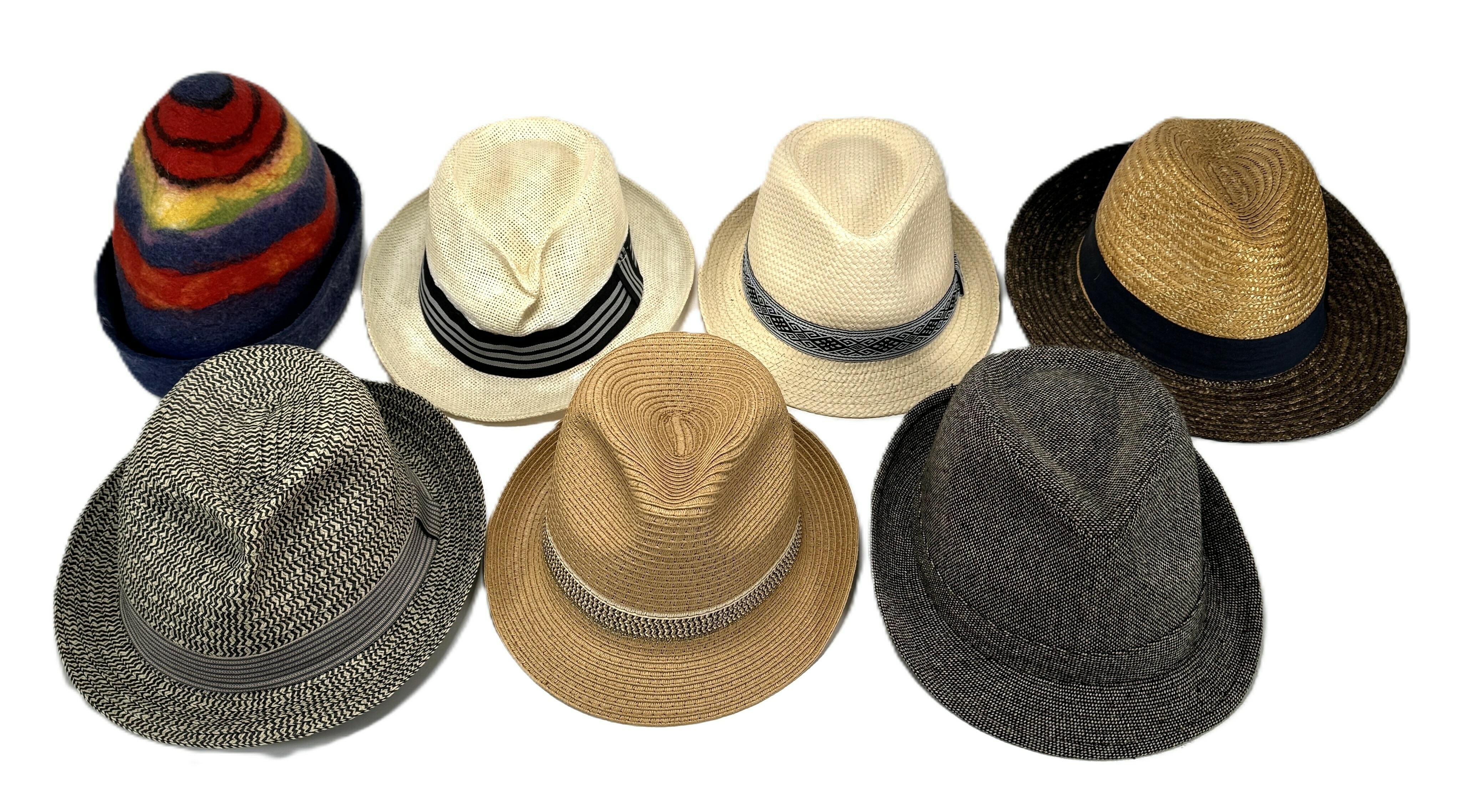 Collectie van zeven hoeden in diverse stijlen en materialen, daterend uit de tweede helft van de twintigste eeuw. De partij omvat zowel zomerse strohoeden als vilten exemplaren, waaronder klassieke Fedora-modellen en een kleurrijk vilten exemplaar. De hoeden zijn uitgevoerd in uiteenlopende tinten zoals beige, bruin, grijs en veelkleurig en zijn voorzien van decoratieve textiele hoedbanden. Wil je direct deelnemen? Plaats vanaf 21 november alvast een schriftelijk bod via onze website! |
