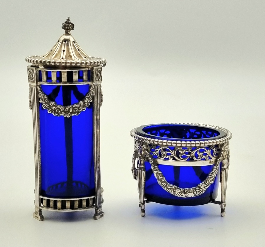 Zilveren zoutstrooier en zoutvaatje, 19e eeuw