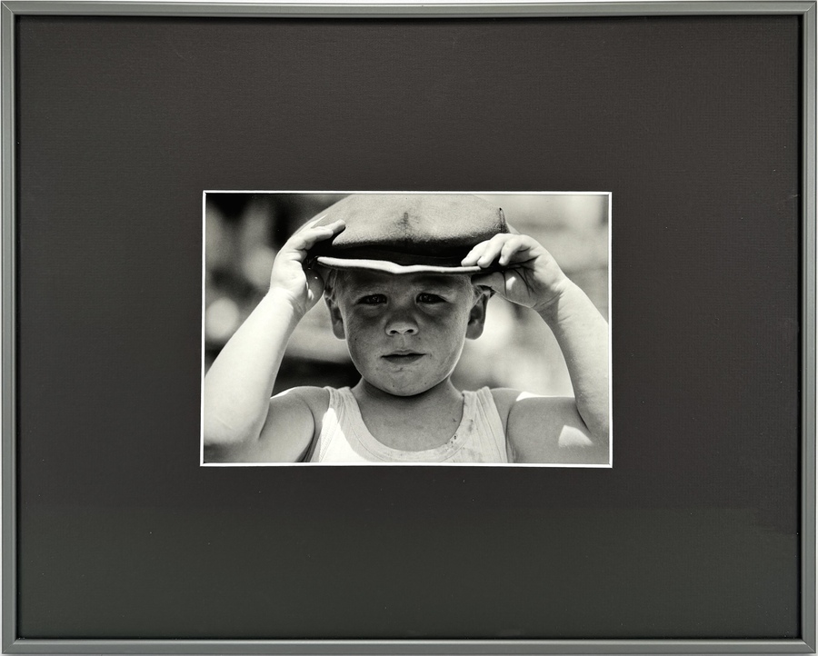 Gelatinezilverdruk in klassiek-humanistische stijl van de fotograaf Frèdèric Rolland, circa 1950–1970. De zwart-wit foto toont een intens portret van een jongen met een pet, waarbij de directe blik en het sterke contrast de emotie van het kind benadrukken. Het werk draagt op de achterzijde het gestempelde adres van zijn studio in Marseille, gesigneerd en gemonteerd in een moderne lijst. Ontdek dit werk en voeg het toe aan jouw collectie! Registreer nu voor de veiling. |