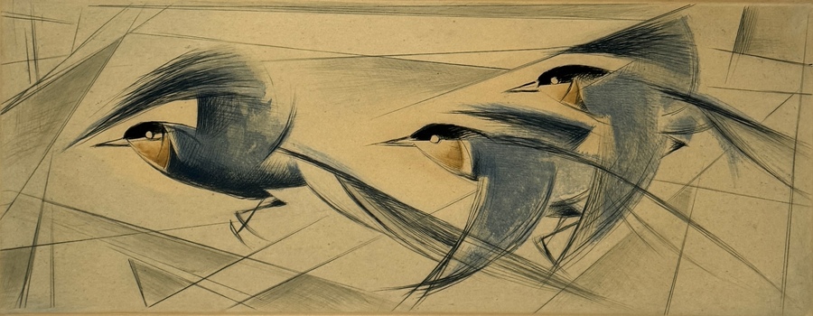 1310. Tekening, Nicolaas Rin – vliegende vogels, Nederland, midden 20e eeuw