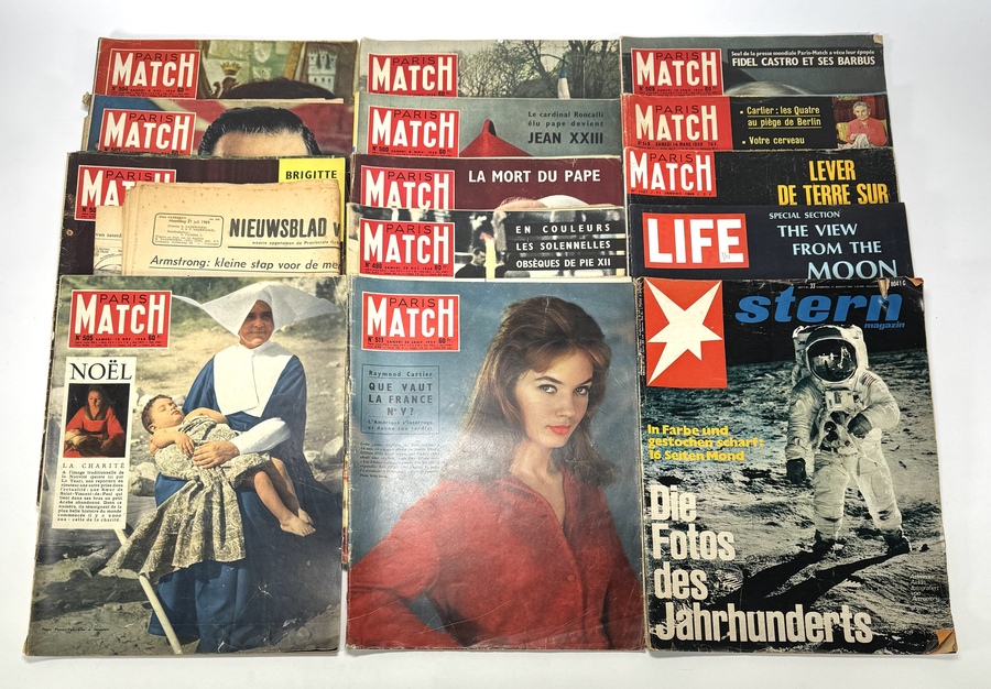 Internationale collectie van ongeveer vijftien tijdschriften en krantenbijlagen uit de jaren 1960. De magazines (Paris Match, LIFE, Stern, Nieuwsblad) zijn gedrukt op papier, thema's omvatten onder andere de dood van Paus Johannes XXIII, de maanlanding en Franse beroemdheden.