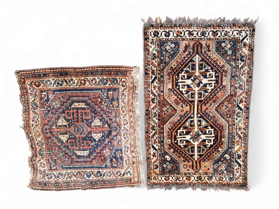 Handgeknoopte tapijten vervaardigd uit wol en gedateerd midden van 20e eeuw. De langwerpige kleden bevatten een symmetrische compositie met een gecentreerd medaillon en brede sierranden.
