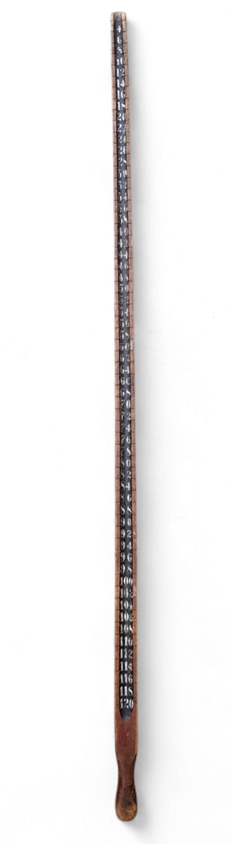 1558. Houten meetstok – vatvolume schaalverdeling, Europa, ca. 1870–1920