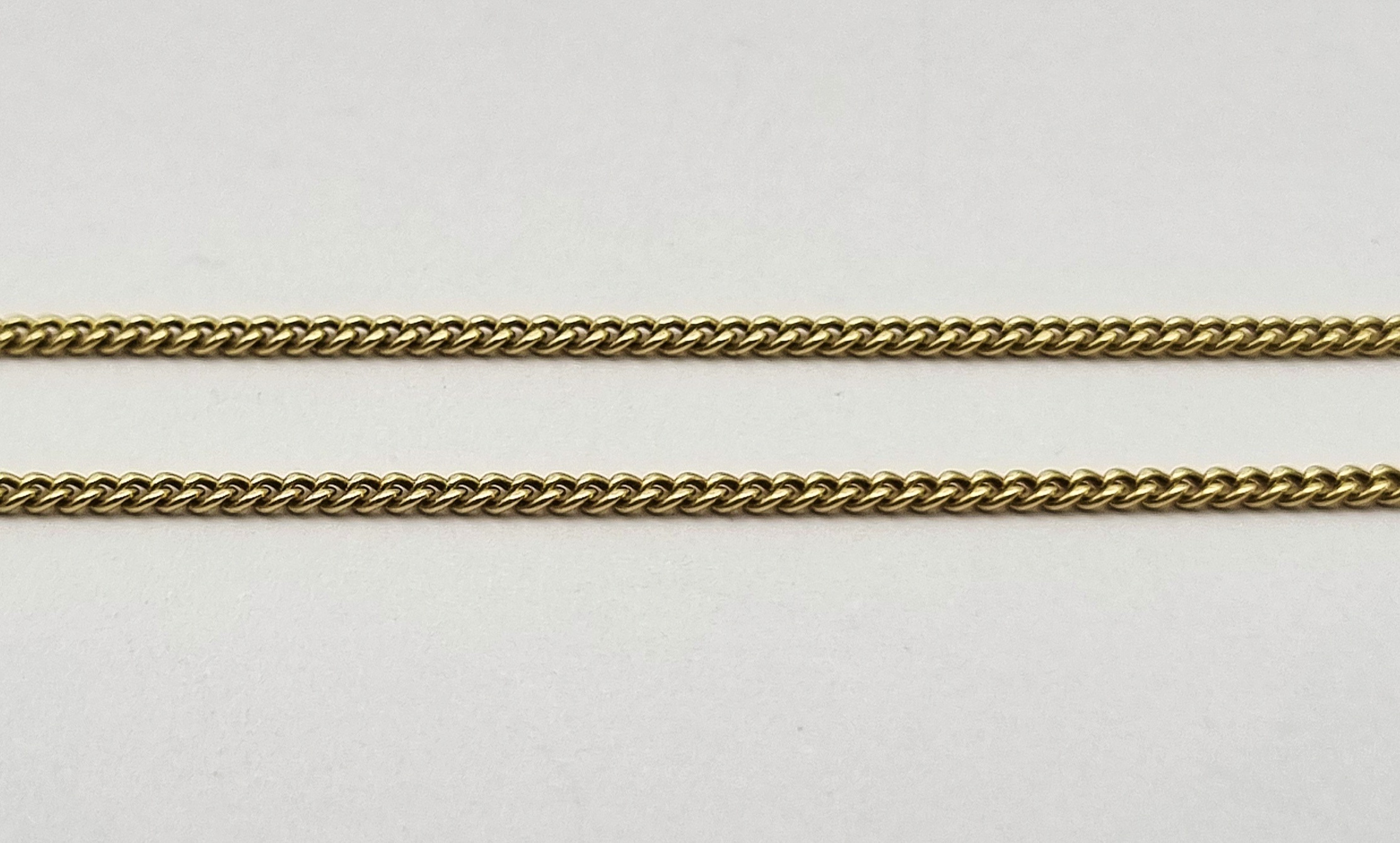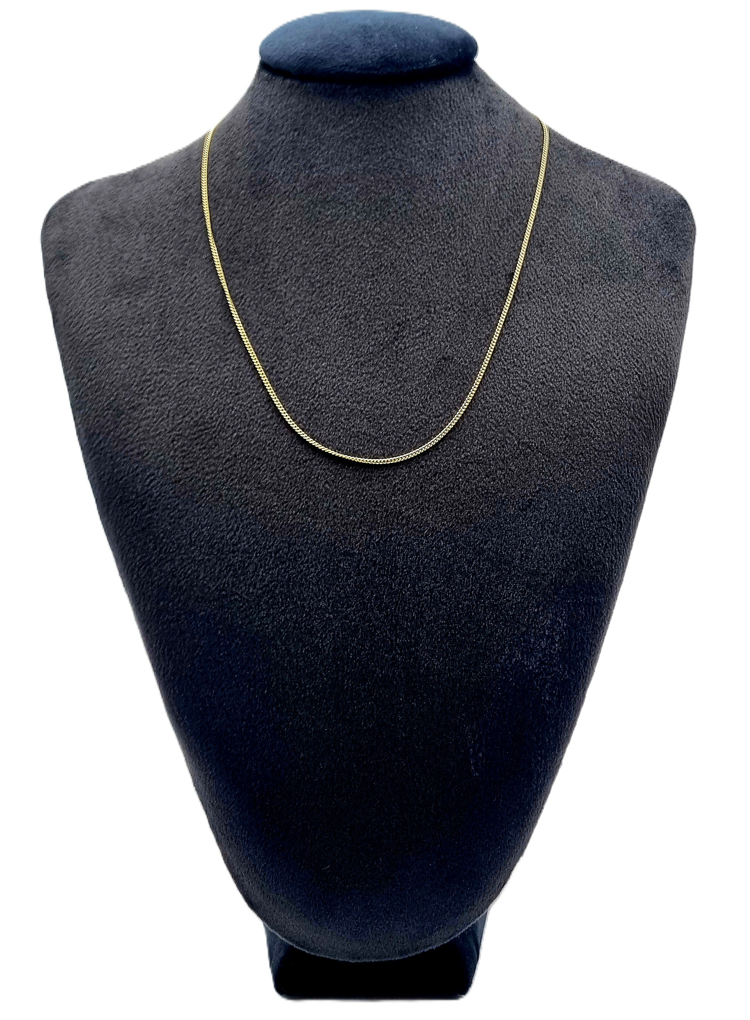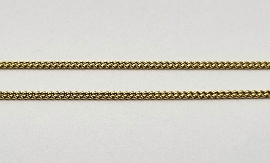 Gouden 14-karaats halsketting uitgevoerd met een verfijnde gourmet-schakel met strakke en gelijkmatige vlechtstructuur. Het sieraad is vervaardigd uit geelgoud en gemerkt met 585 op de sluiting. Datering eind 20e eeuw. De halsketting zelf beoordelen? Je bent welkom op onze kijkdagen op 10, 11 en 12 april! |