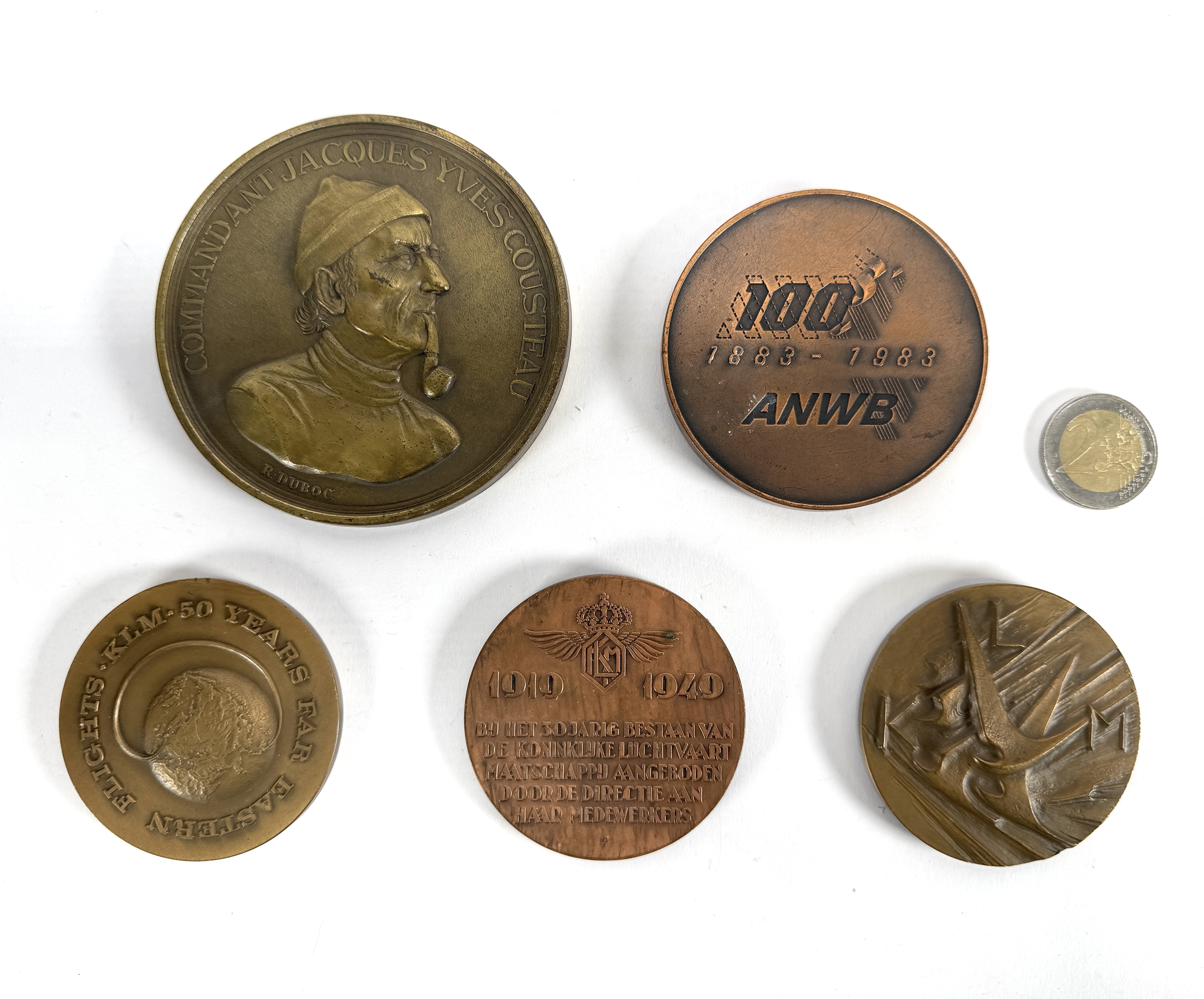 Bronzen penningen - KLM, ANWB en Cousteau, tweede helft 20e eeuw