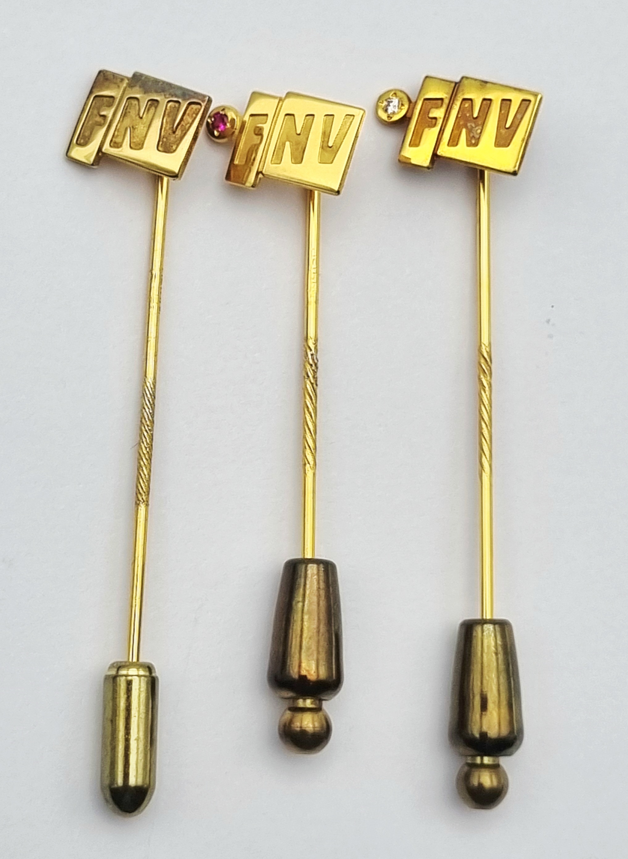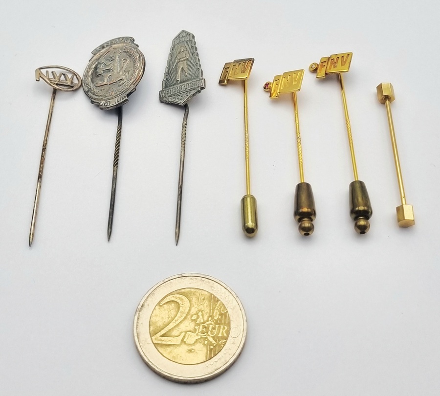 | Afmetingen | Max. lengte 6,5 cm en gewicht gouden FNV speldjes 3,15 gram. | |