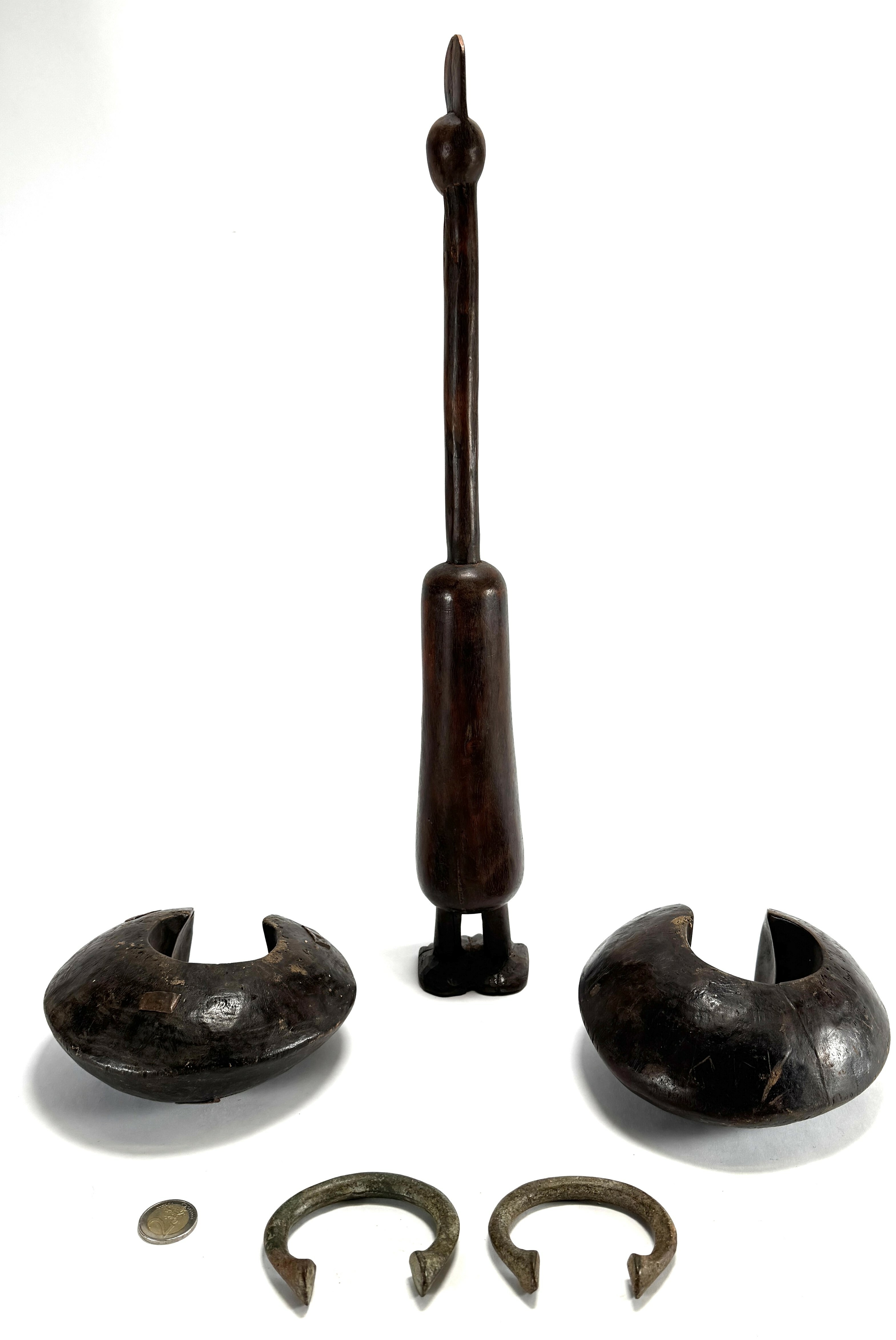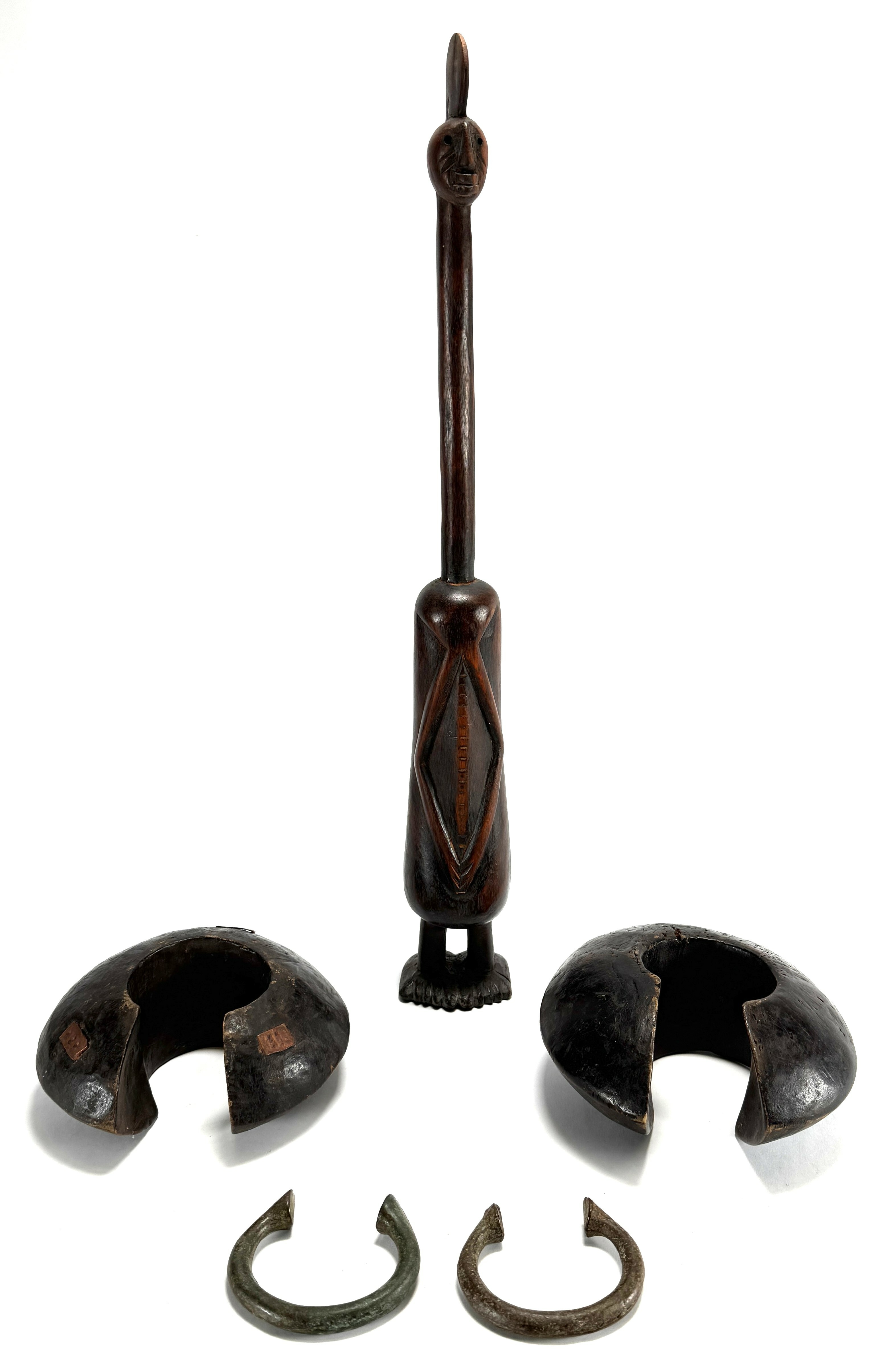 Houten beeld en armbanden - Oost-Afrika, eind 20e eeuw