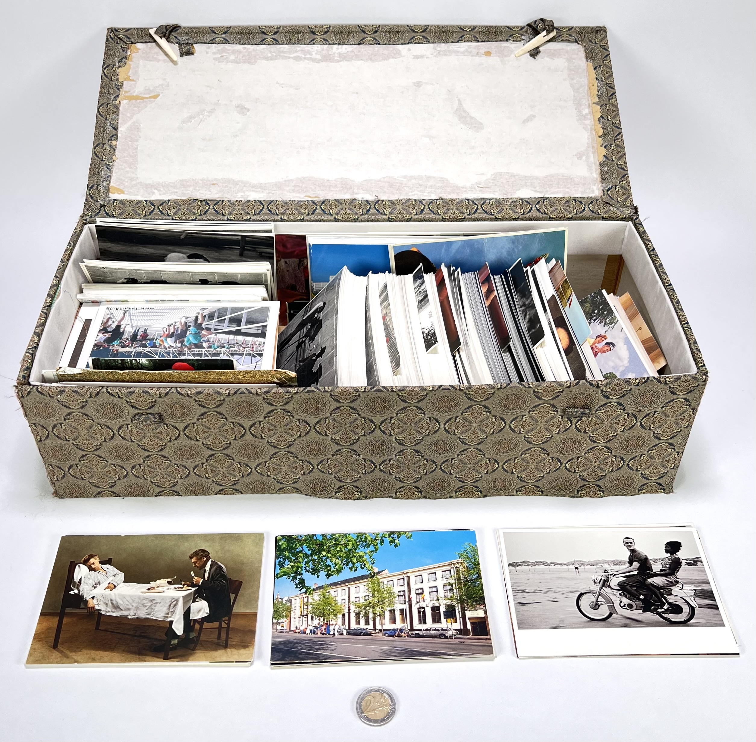 Collectie ansichtkaarten in modernistisch-documentaire stijl, bestaande uit een verzameling fotokunstreproducties van diverse internationale uitgevers. De set bevat zwart-wit en kleurenbeelden met thema's variërend van architectuur tot portretfotografie. De ansichtkaarten dateren uit circa 1970–2000 en hebben een internationale herkomst. Wil je direct deelnemen? Plaats vanaf 3 april alvast een schriftelijk bod via onze website! |