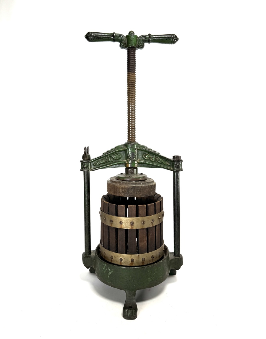 | Kavelnummer en naam | 888. Antieke fruitpers – gietijzer met houten korf, begin 20e eeuw | |