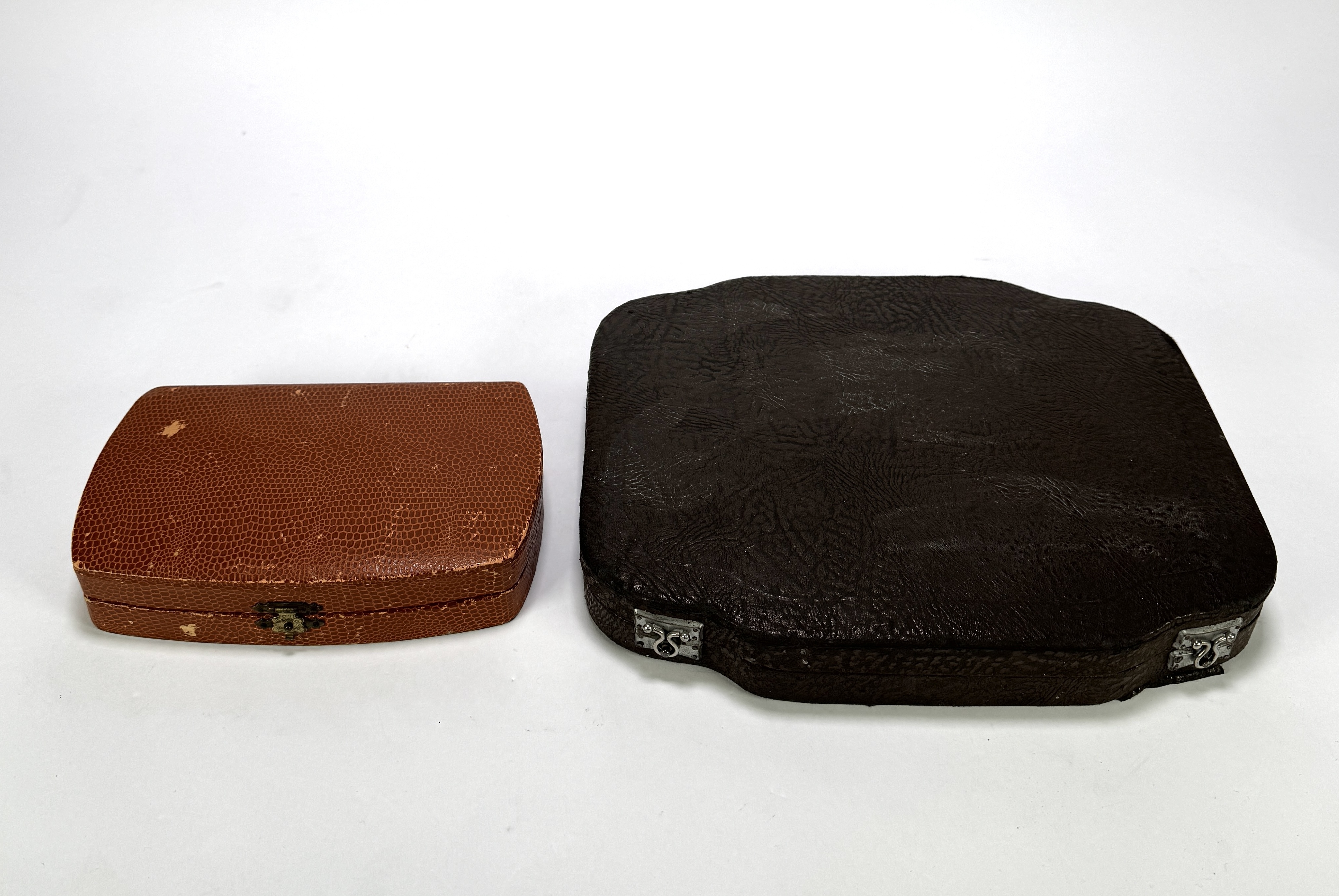 Twee manicuresets uit de Art Deco periode vervaardigd uit faux-ivoir, staal en celluloid. De cassettes zijn voorzien van diverse instrumenten voor handverzorging en gepresenteerd in zijden en fluwelen voeringen. De manicuresets bevinden zich in de originele etuis. Datering vroege 20e eeuw en een Europese herkomst. Zeker zijn van deelname? Plaats vanaf 3 april een schriftelijk bod online! |