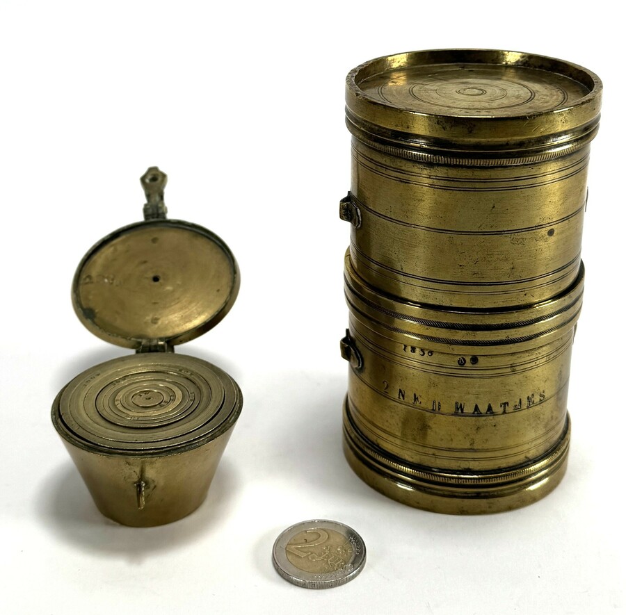 Messing sluitgewicht en graanbalans - Nederland, 19e eeuw