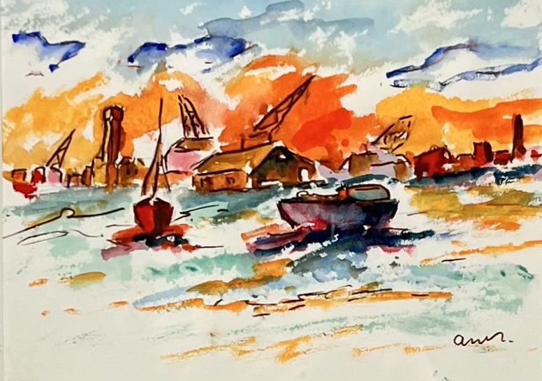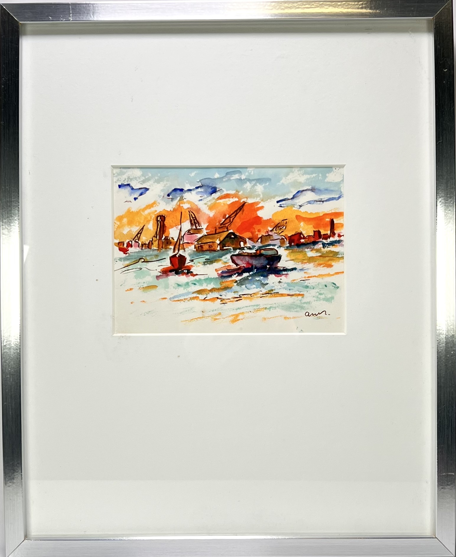 Aquarel, Arie Zuidersma – havengezicht, ca. 1970