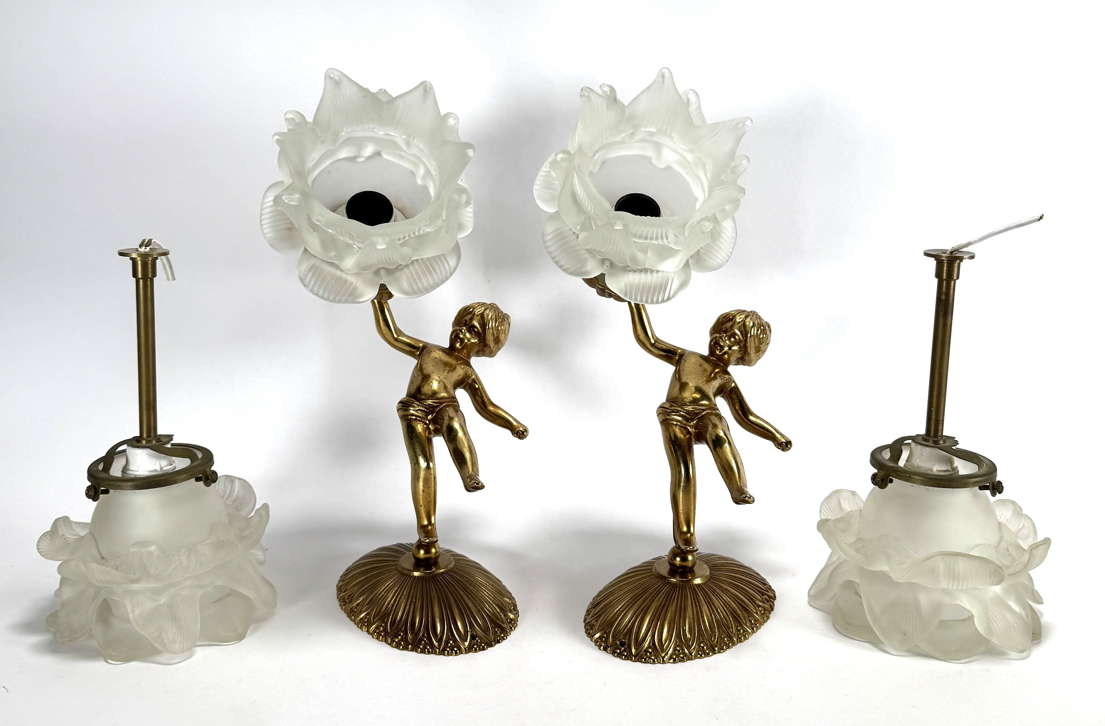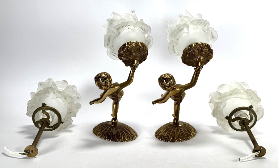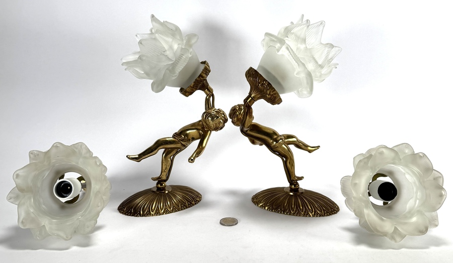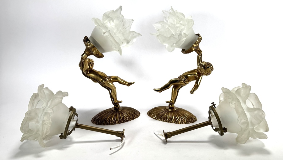Messing wandlampen met cherubijnen, tweede helft 20e eeuw