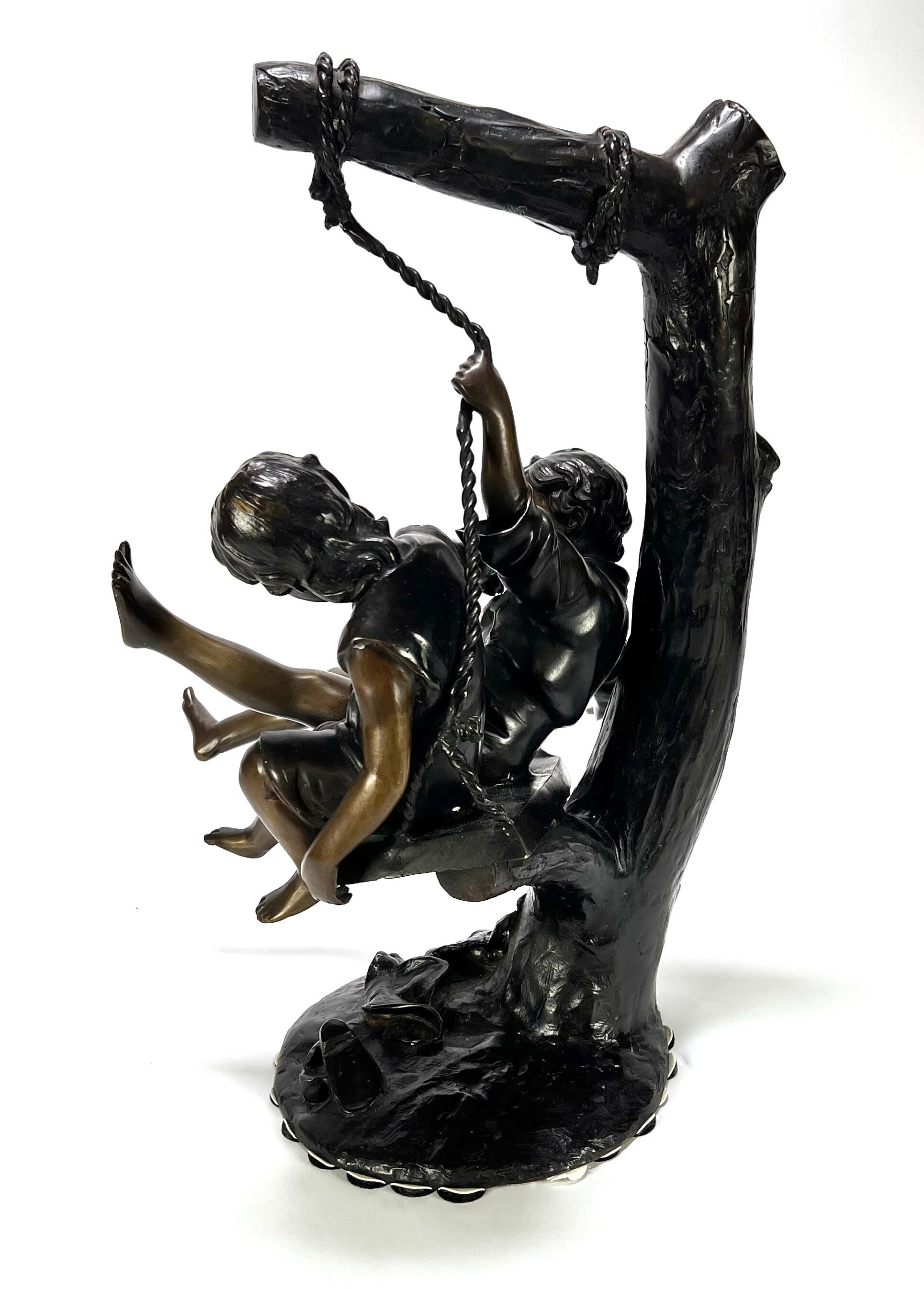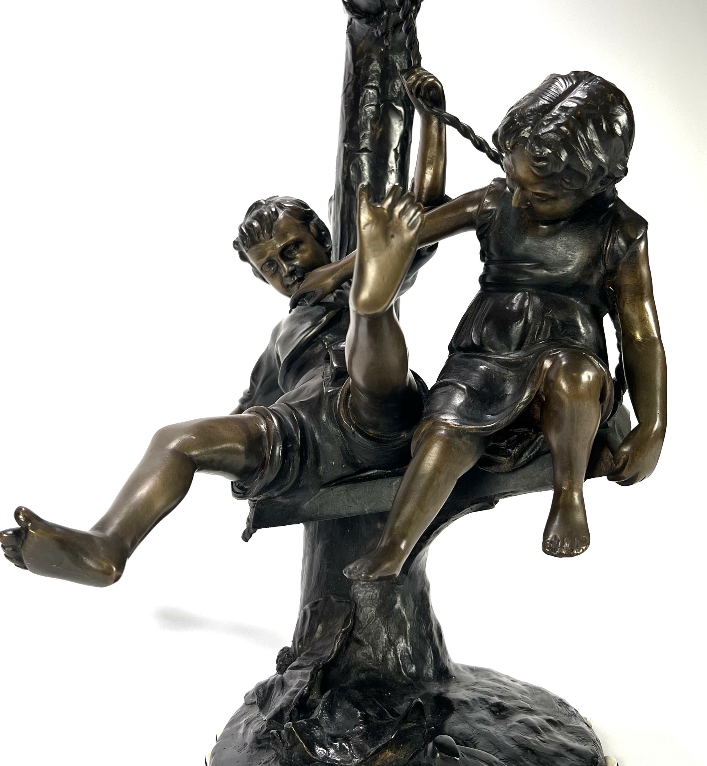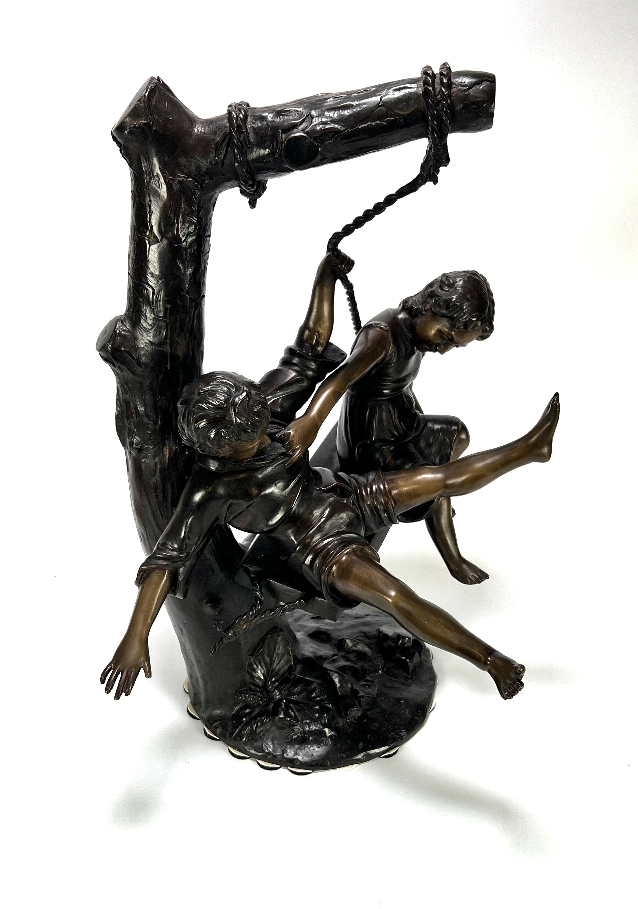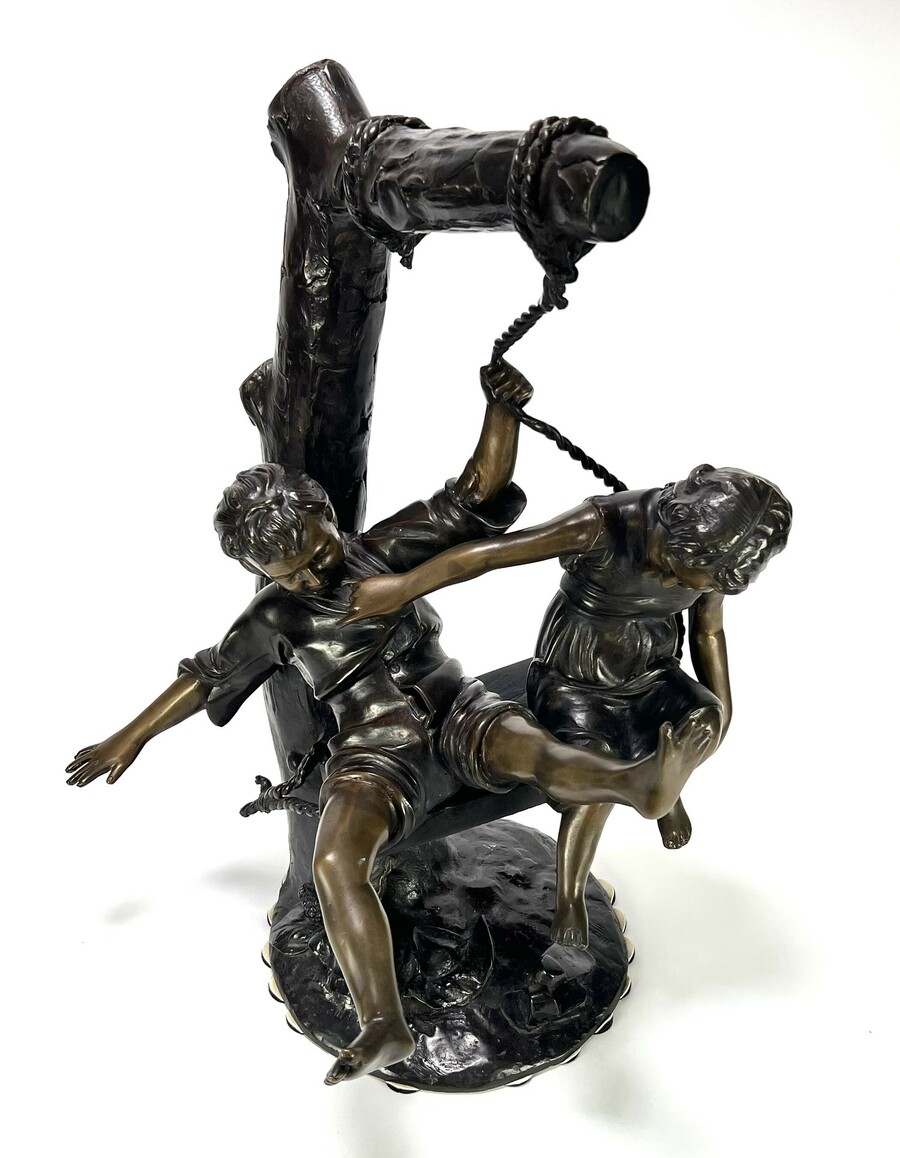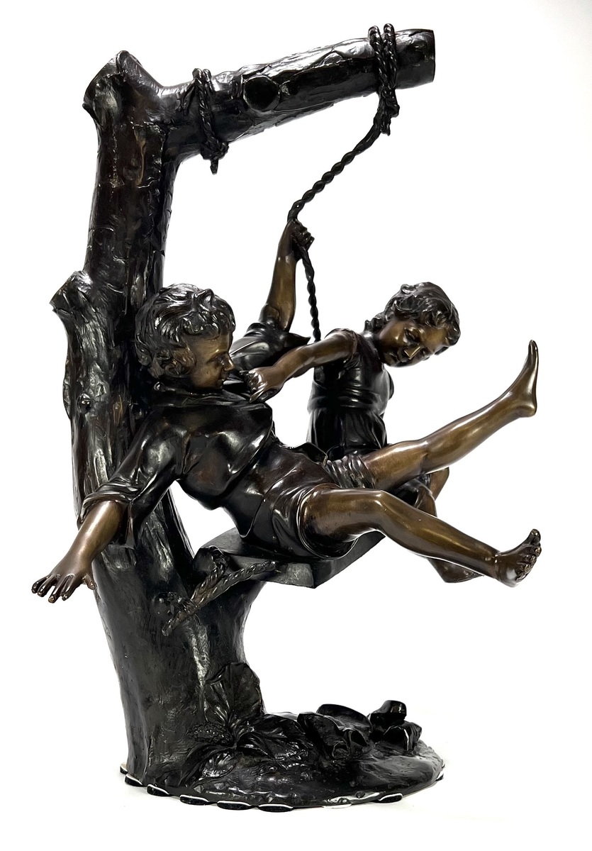 Messing beeld – kinderen op schommel, Frankrijk, eerste helft 20e eeuw
