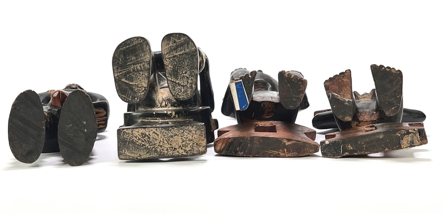Houten Baule beelden uit Ivoorkust, laat 20e eeuw. Het kavel omvat diverse beelden waaronder een moederschapsbeeld, een vruchtbaarheidsfiguur en een ceremoniële kam. De beelden tonen karakteristieke Baule-kenmerken zoals fijn gesneden coiffures en scarificaties, geaccentueerd met kaolien-pigment. Klaar om te bieden? Registreer je nu en doe mee aan de veiling! |