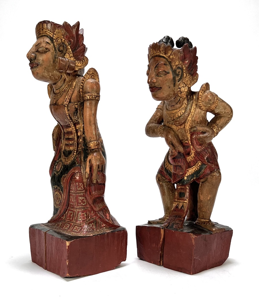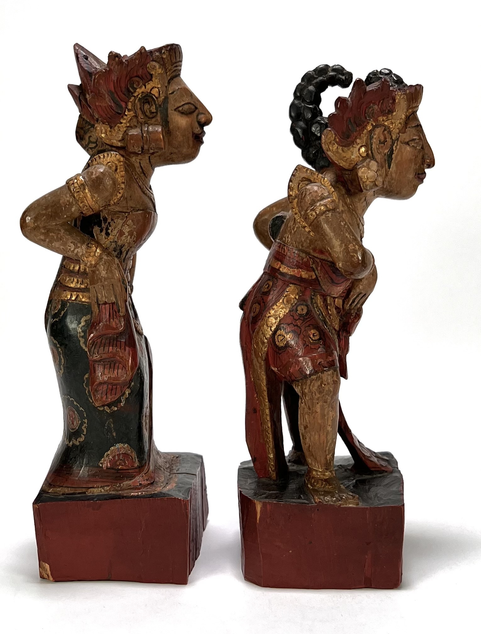 Houten beelden, Bali – man en vrouw in kostuum, Indonesië, midden 20e eeuw