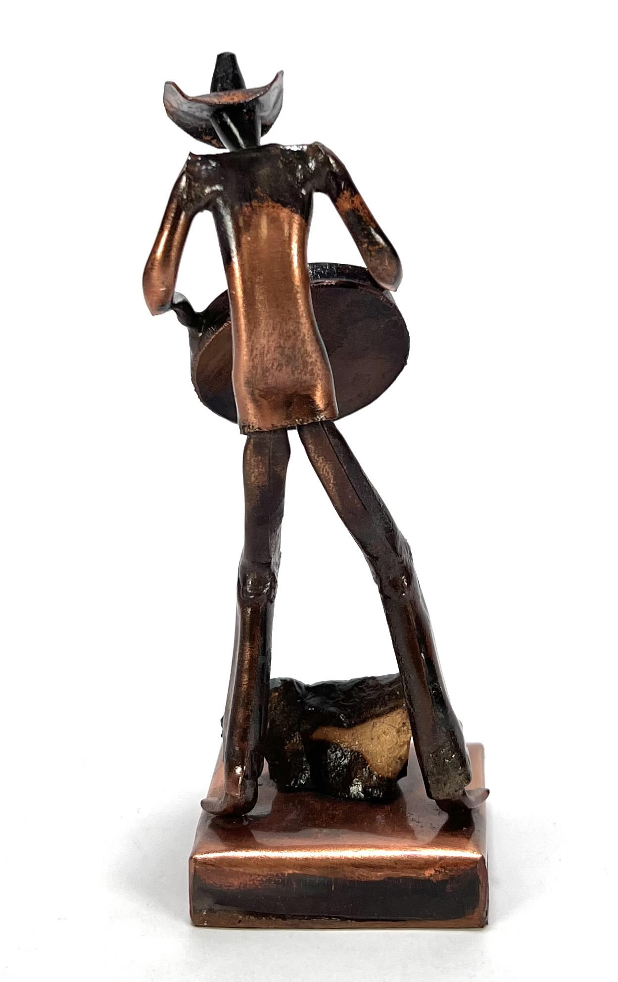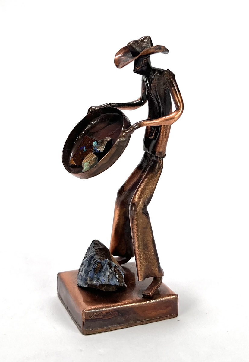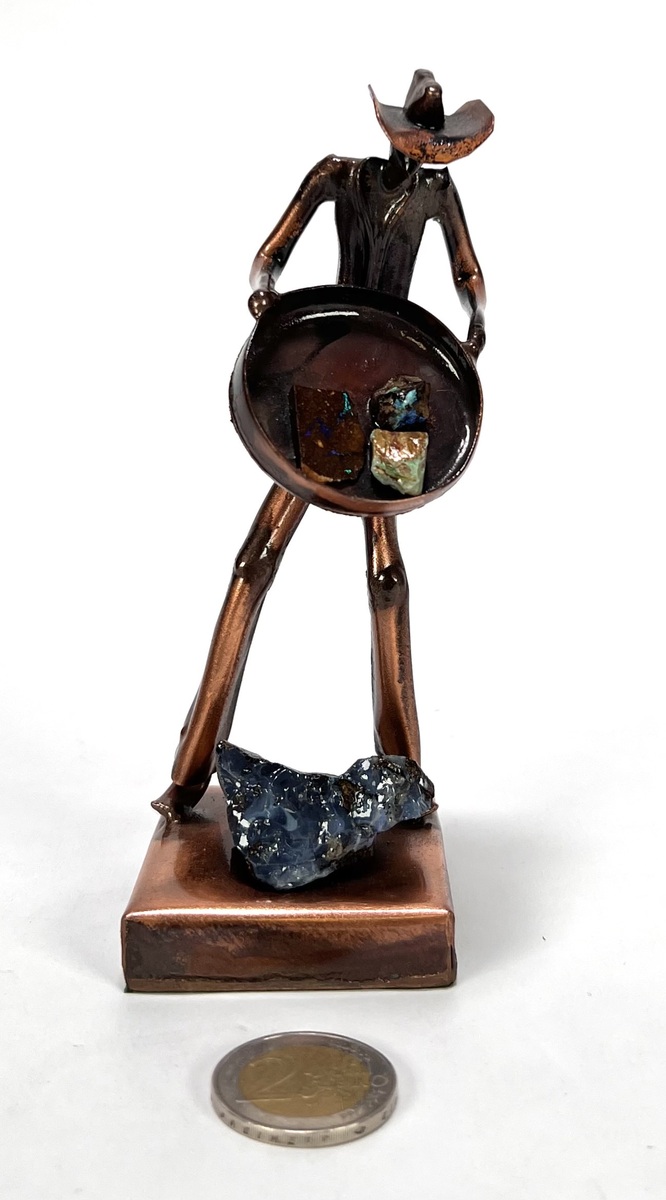 Koperen beeldje goudzoeker en kristallen, tweede helft 20 eeuw