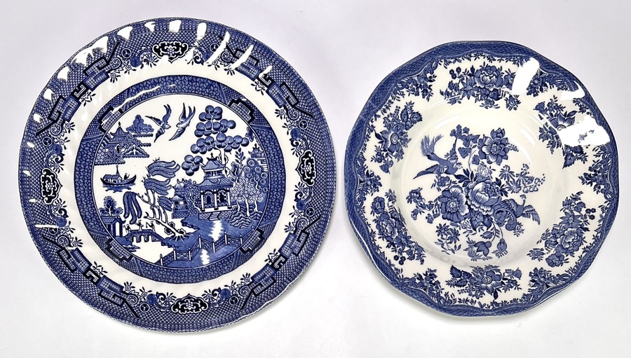 Borden en wandbord van Wedgwood, Royal Wessex, Boch Delft en Imari China, vervaardigd uit porselein en aardewerk met transferdecoraties. Bestaand uit diepe en platte borden met Chinoiserie-motieven en een wandbord met Hollands molenlandschap. Datering 20e eeuw. Klaar om te bieden? Registreer je nu en doe mee aan de veiling! |
